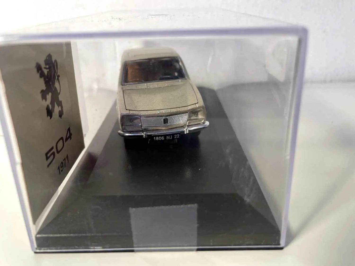 Coche en Miniatura Peugeot 504 marrón de 1971 (caja de plexiglás)