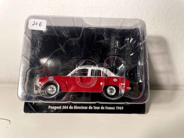 Este magnífico Peugeot 504 rojo y blanco del director del Tour de Francia de 1969 te transporta al corazón de una época legendaria del ciclismo francés. Esta miniatura excepcional captura perfectamente el espíritu de la Grande Boucle en un año mítico, inmortalizando el vehículo oficial que acompañó a los ciclistas en las carreteras de Francia.