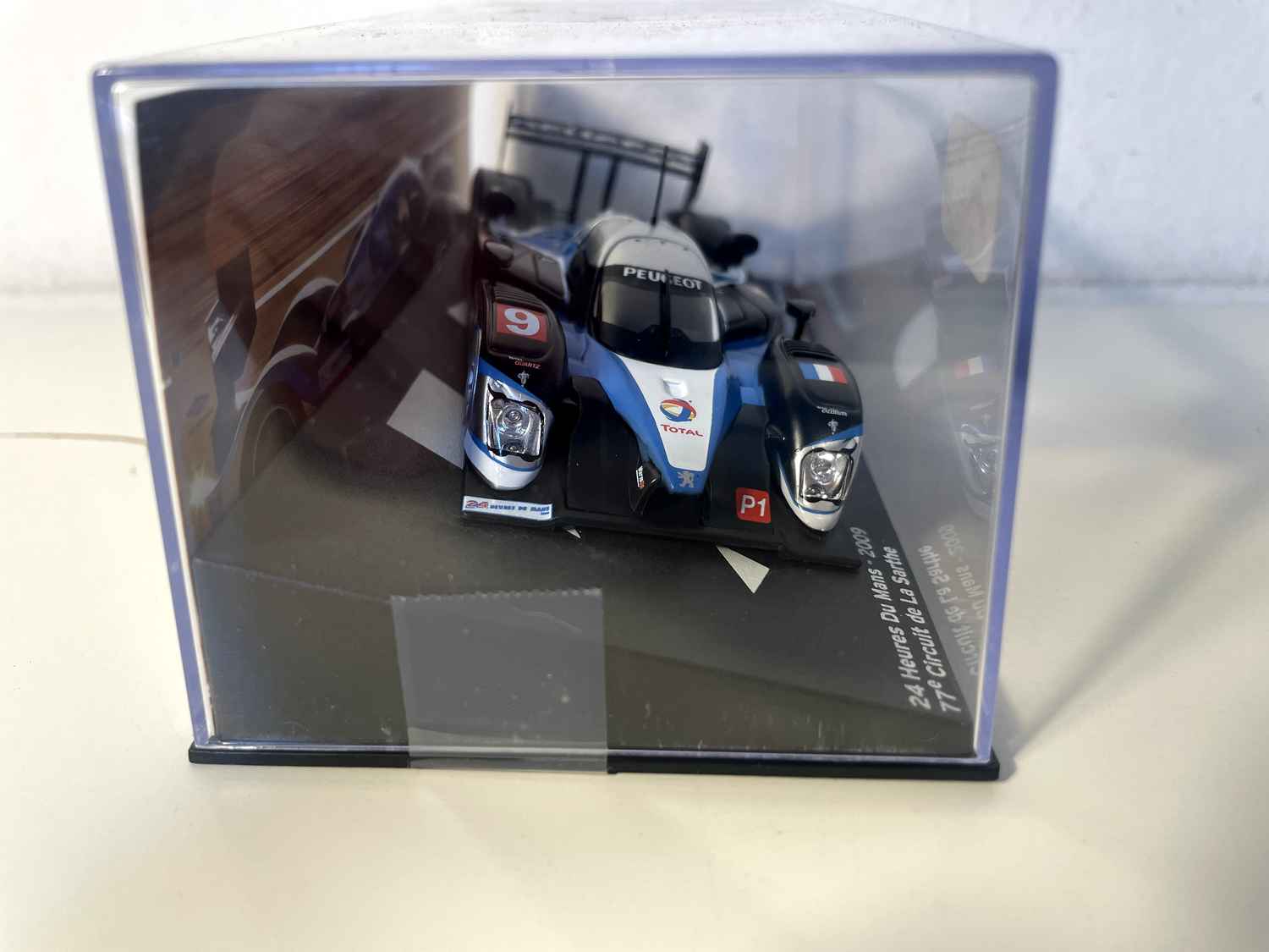 Coche en Miniatura Peugeot 908 HDi FAP bleue, noire et grise numéro 9 - 24 heures du Mans de 2009