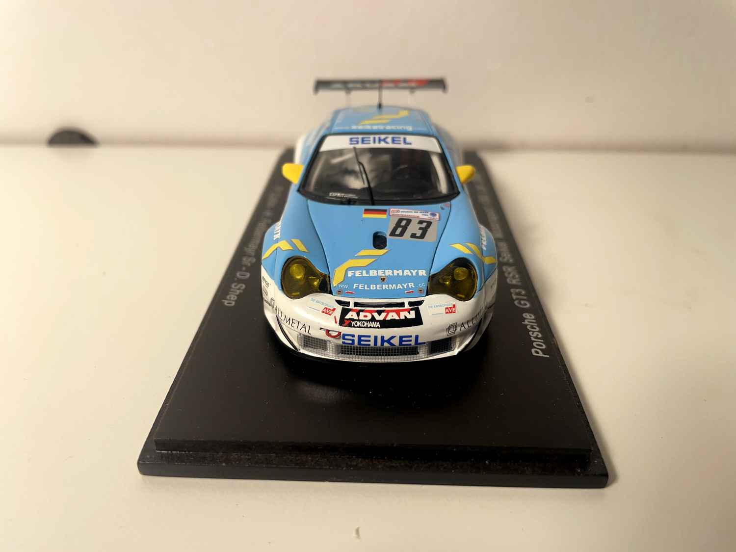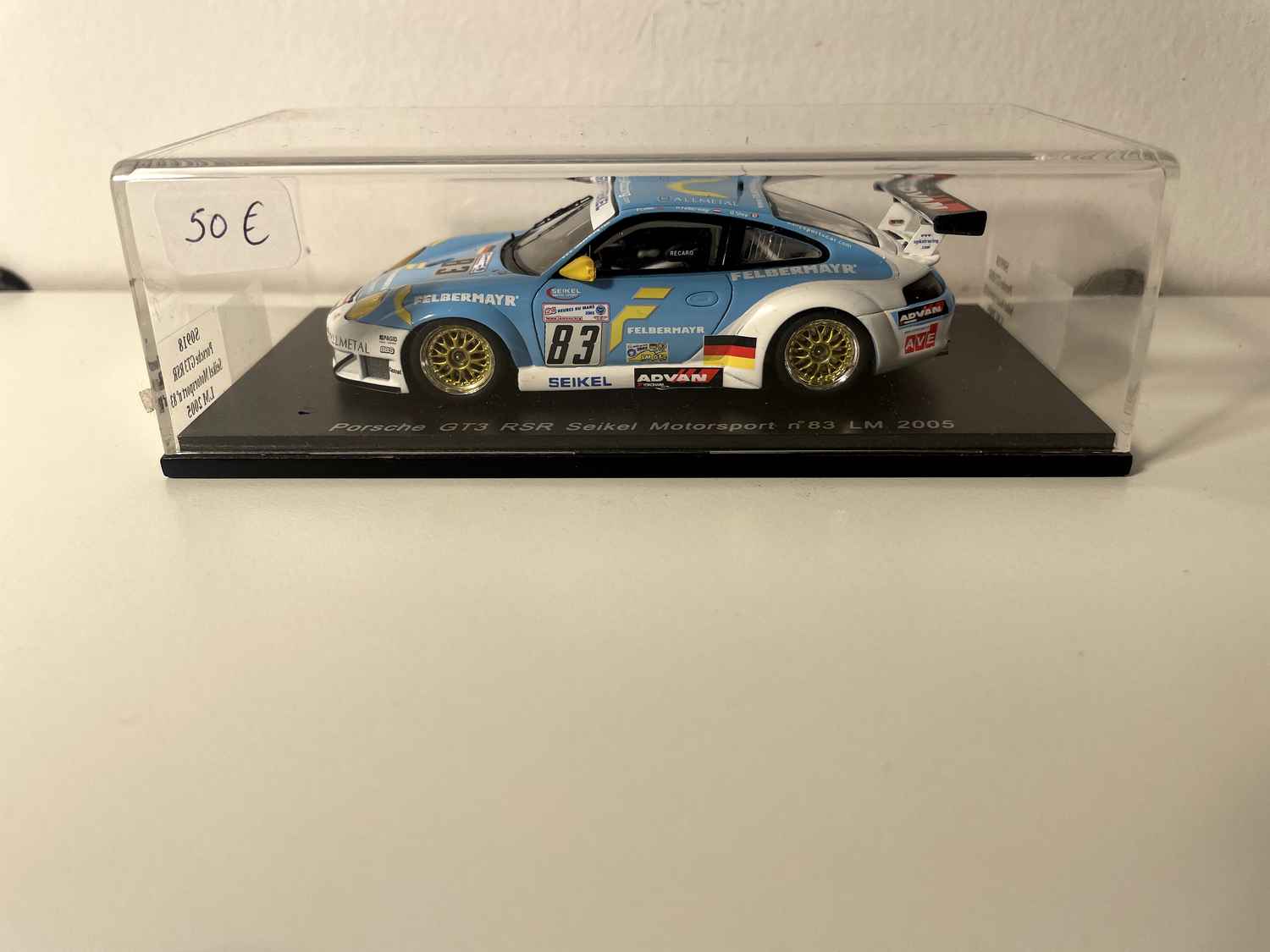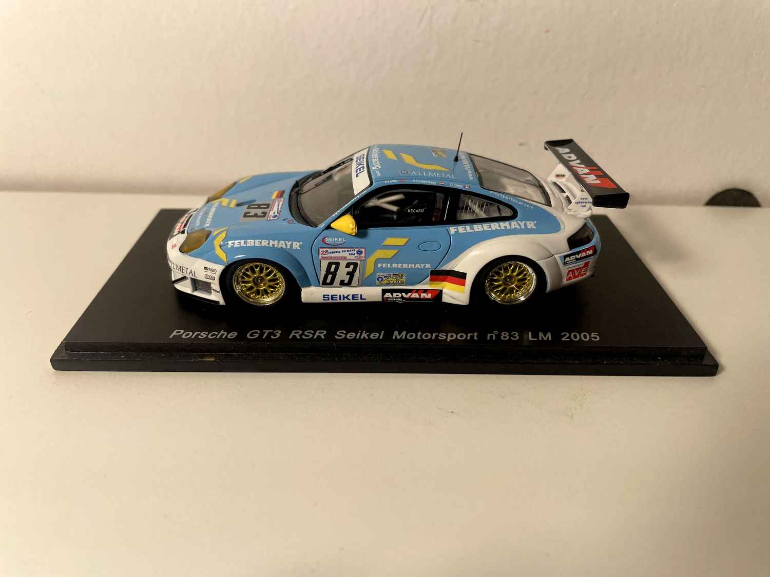 Coche en Miniatura Porsche GT3 RSR Seikel Motorsport azul y blanca número 83 - 24 horas de Le Mans de 2005 - SPARK