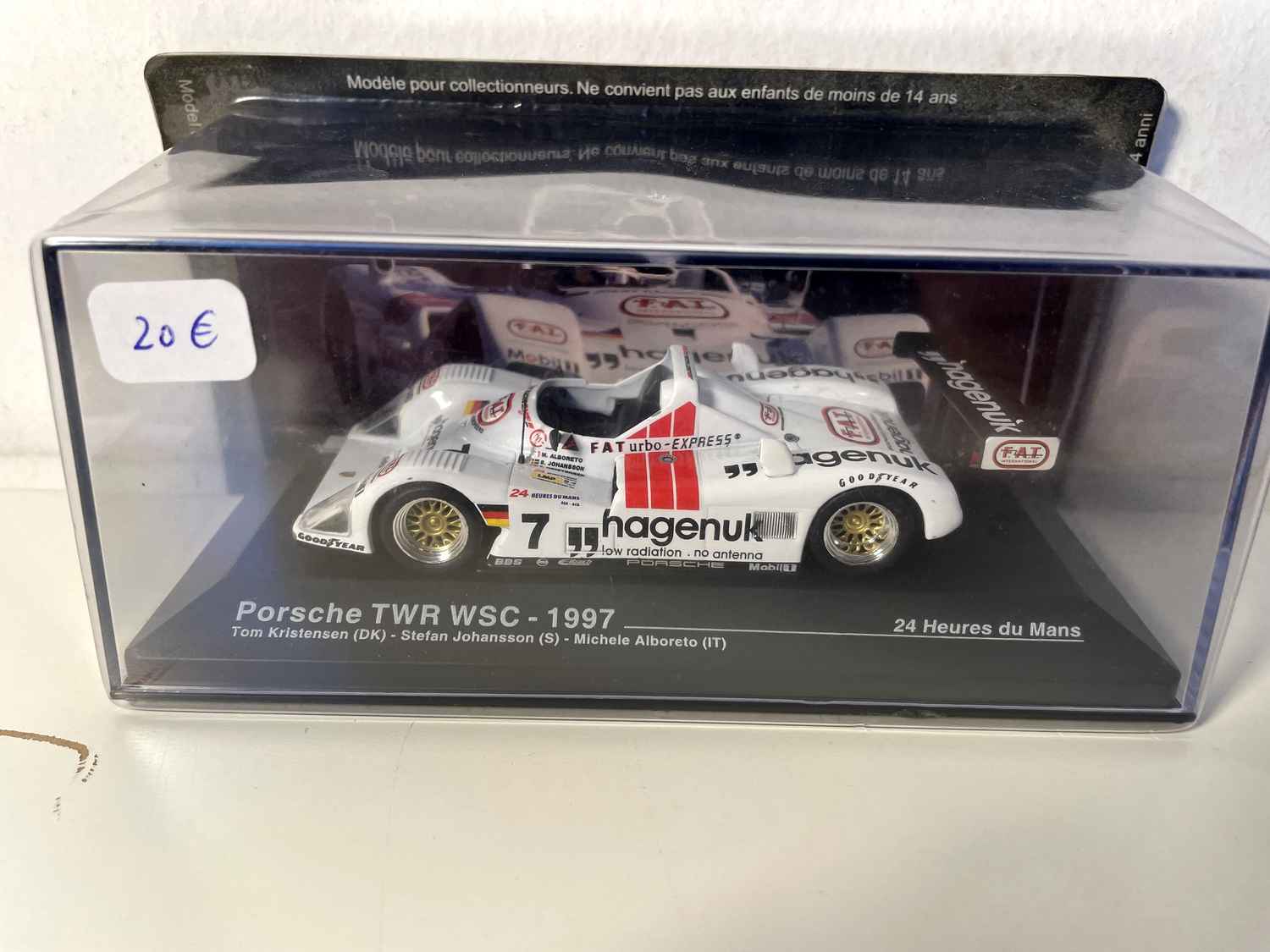 Este Porsche TWR WSC de las 24 Horas de Le Mans de 1997 se sitúa como un elemento clave en una colección dedicada a la resistencia automovilística. Combina a la perfección con otros modelos icónicos de esta época crucial, en particular las miniaturas de las 24 Horas de Le Mans que trazan la evolución técnica y estética de los prototipos.