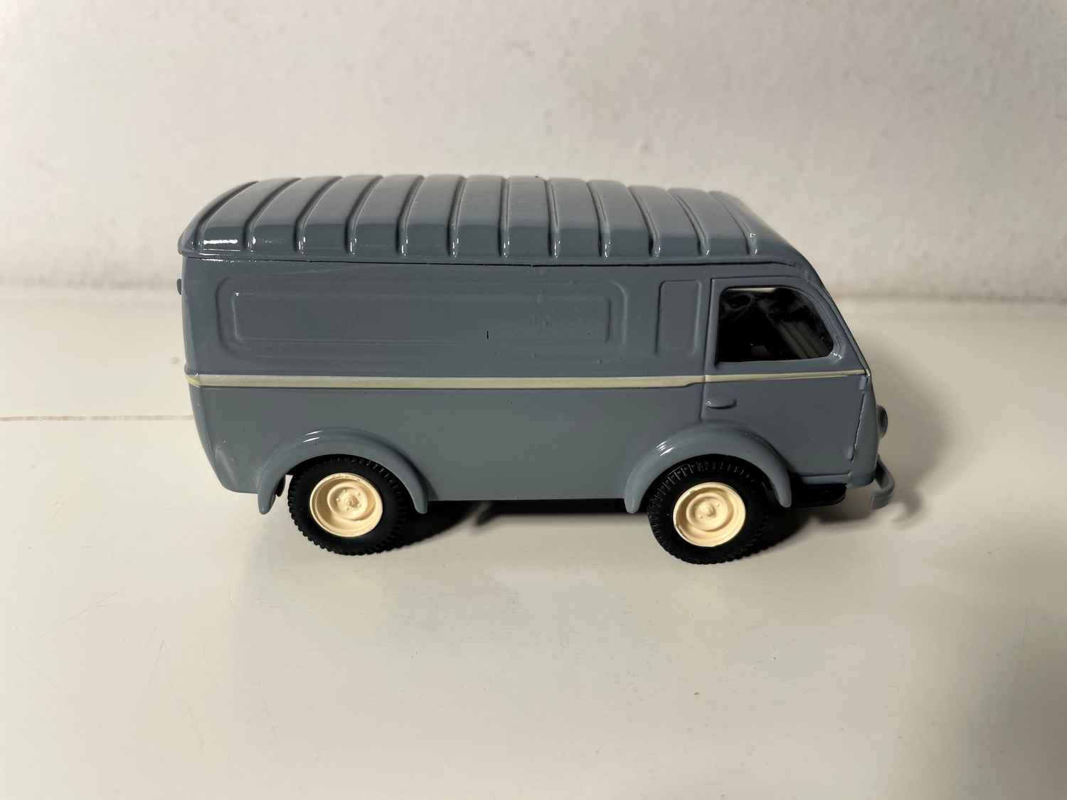 Destinada a coleccionistas apasionados de automóviles franceses y a aficionados de vehículos utilitarios de época, esta miniatura se inserta perfectamente en el universo de las reproducciones patrimoniales. Representa una parte esencial de la historia industrial francesa, la de los vehículos utilitarios ligeros que acompañaron la reconstrucción del país.
