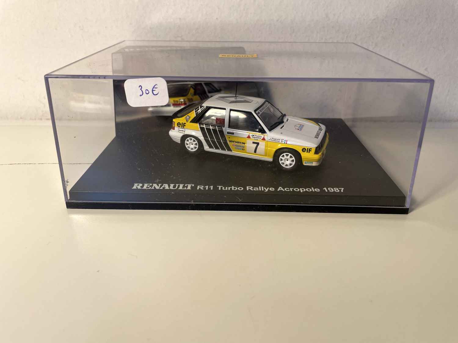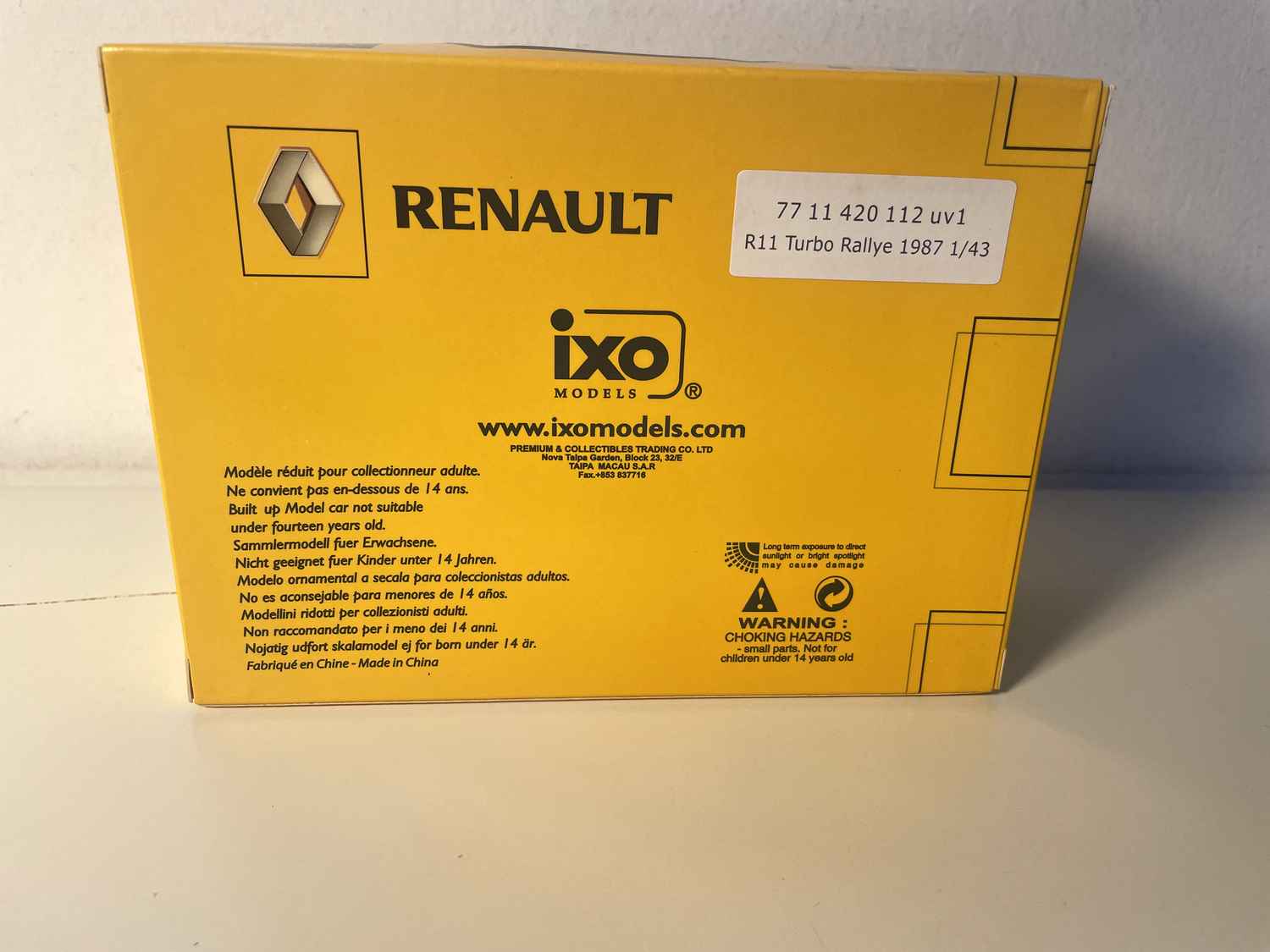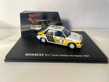 Coche en Miniatura Renault 11 Turbo blanco y amarillo número 7 - rallye de Acrópolis de 1987 (caja rectangular) - IXO