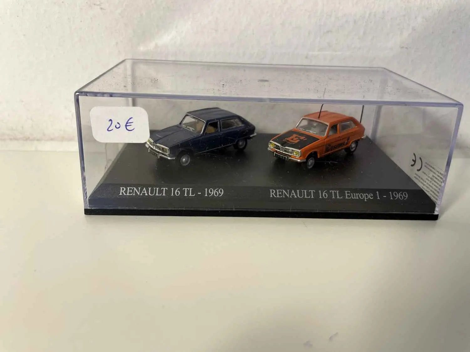 Coche en Miniatura Renault 16 TL azul de 1969 + Renault 16 TL naranja EUROPE 1 de 1969 (escala HO)