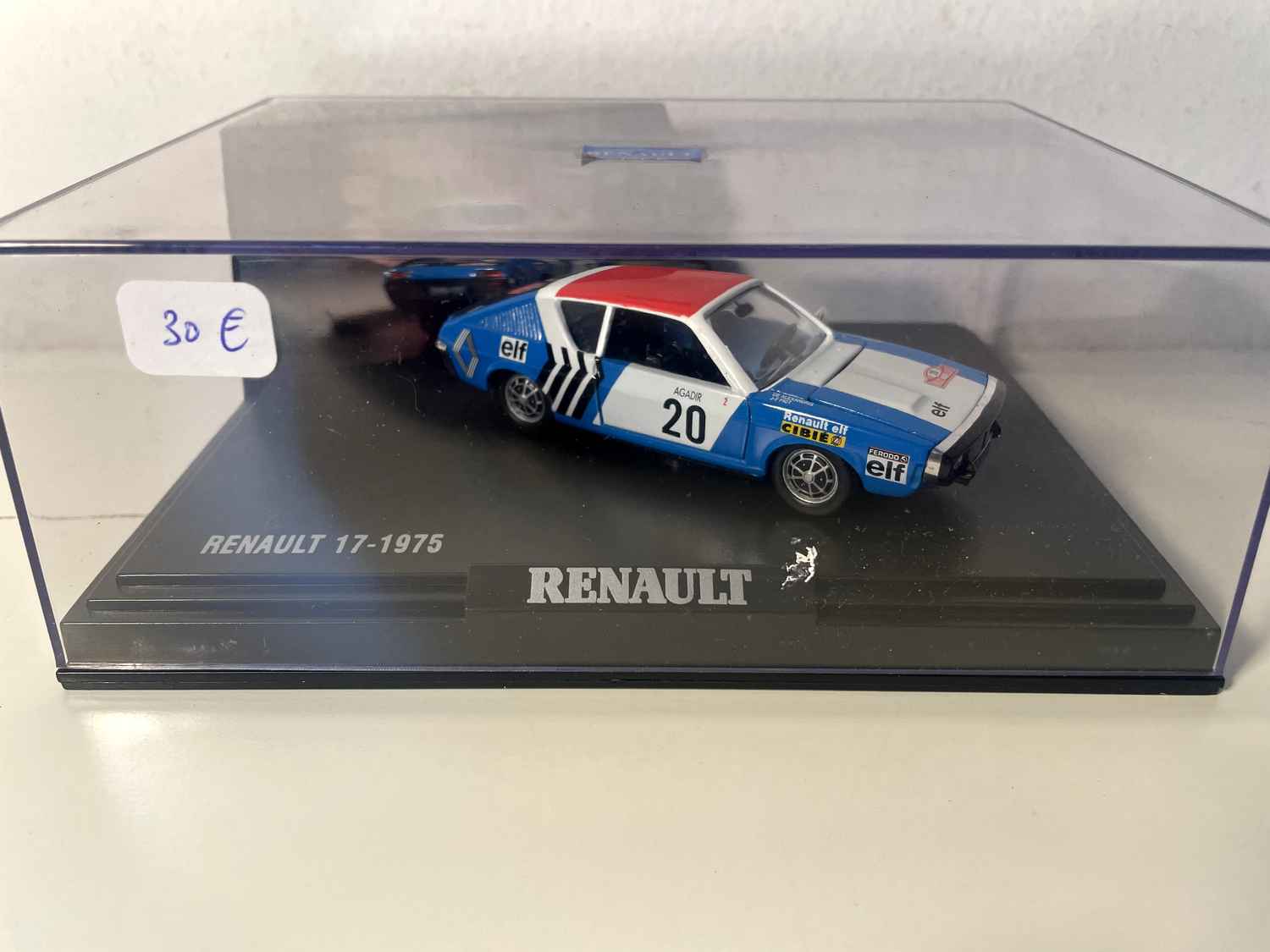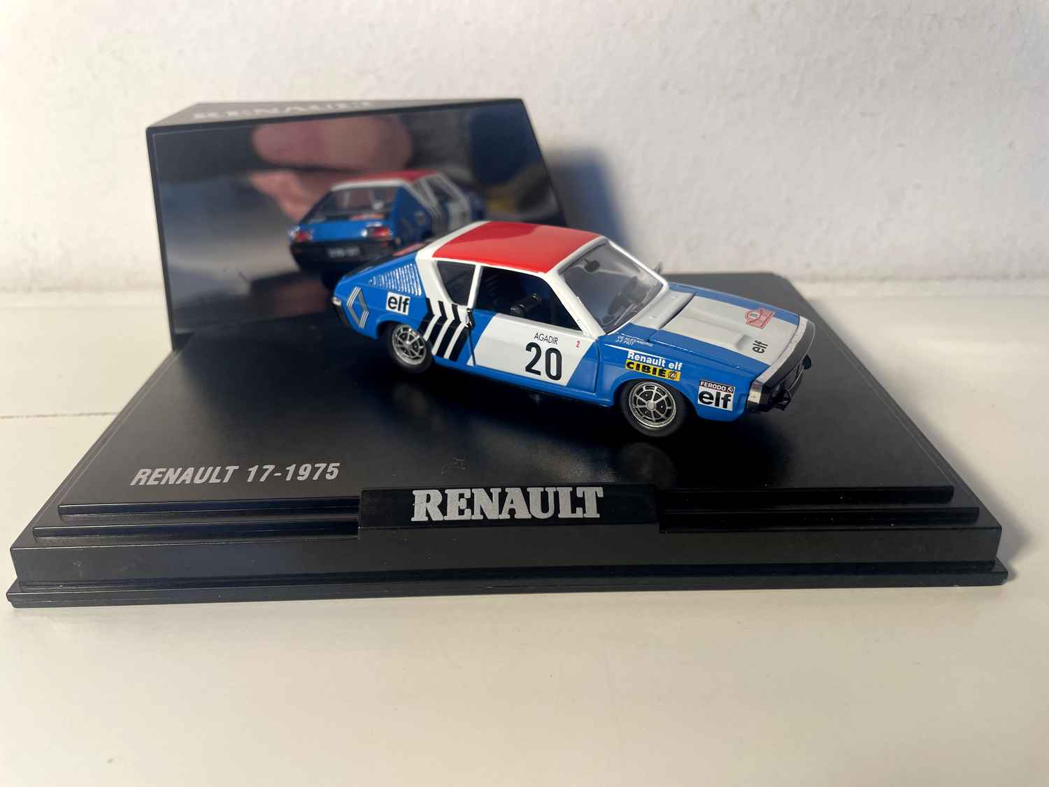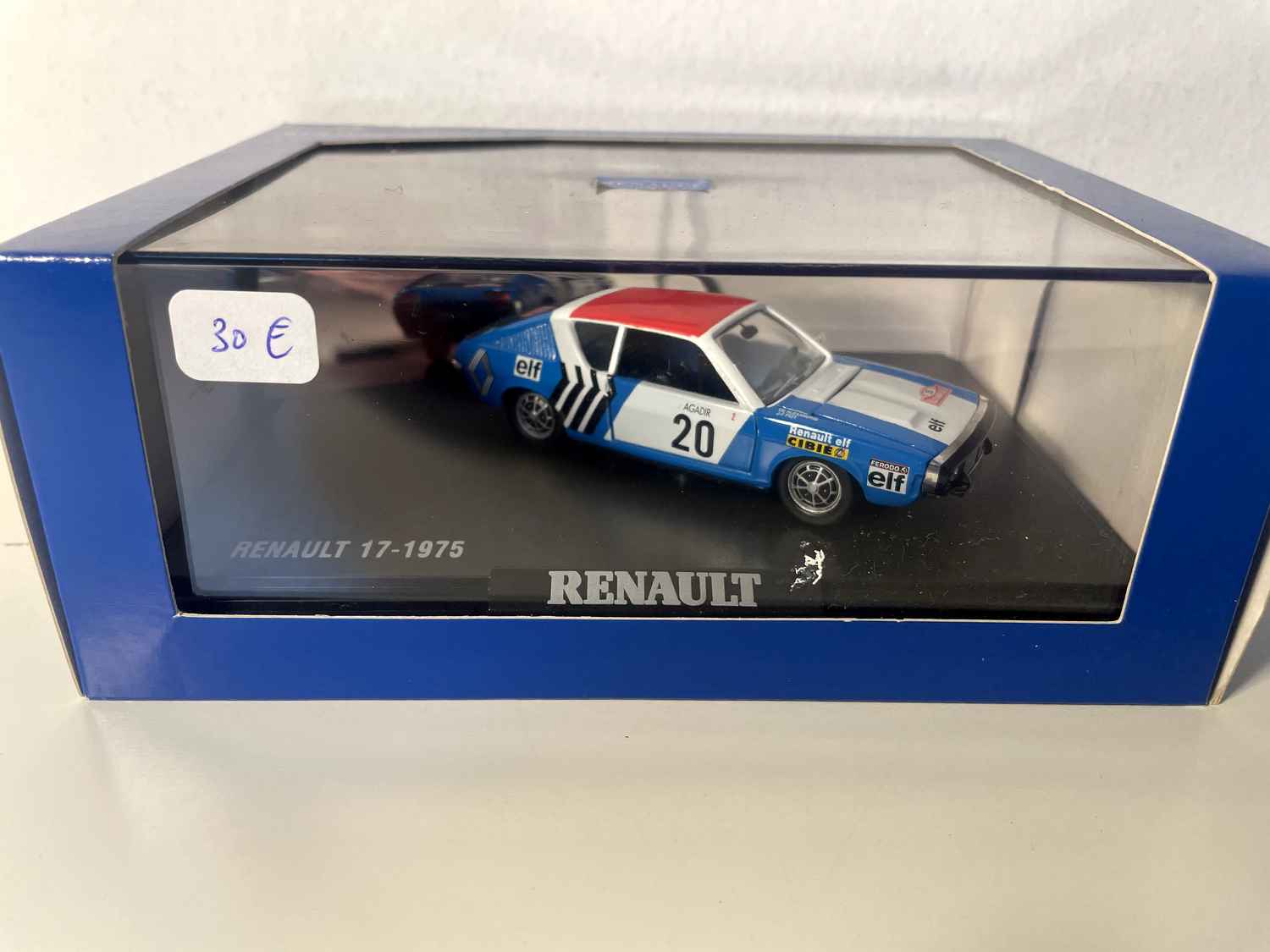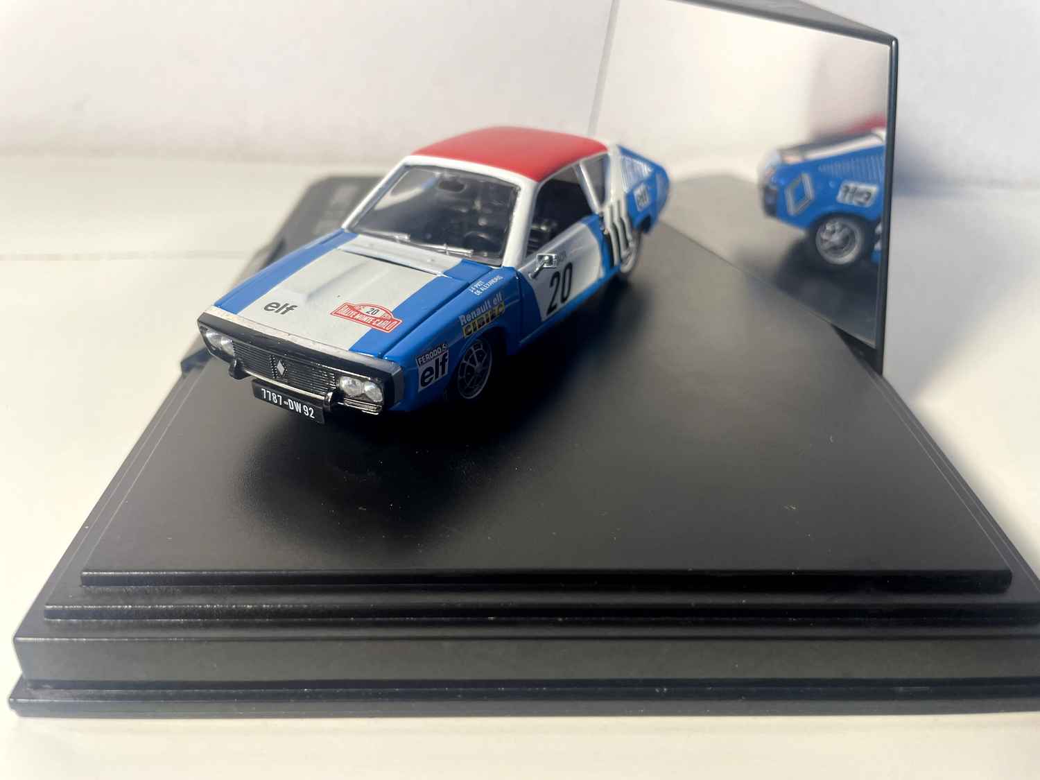 Coche en Miniatura Renault 17 azul, blanco y rojo de 1975 número 20 - rallye de Monte-Carlo (caja rectangular) - NOREV