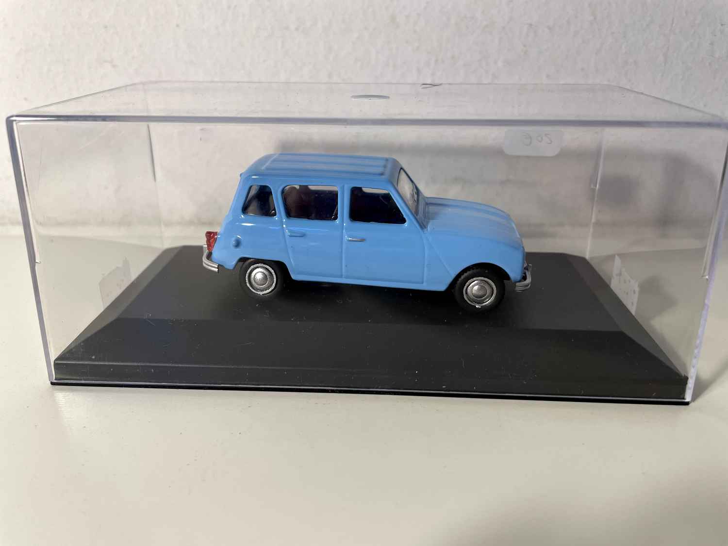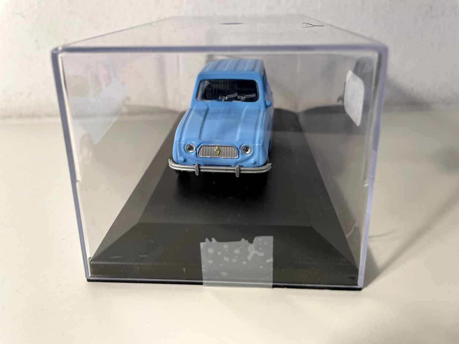 Coche en Miniatura Renault 4L azul cielo (auto añadido a una base)