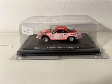 Este Alpine A110 1600S Team Aseptogyl se integra de forma natural en una colección dedicada a los coches miniatura Alpine Renault . Combina a la perfección con las demás versiones del A110, en particular con las versiones de rally con los colores oficiales de Renault o con los modelos de competición .