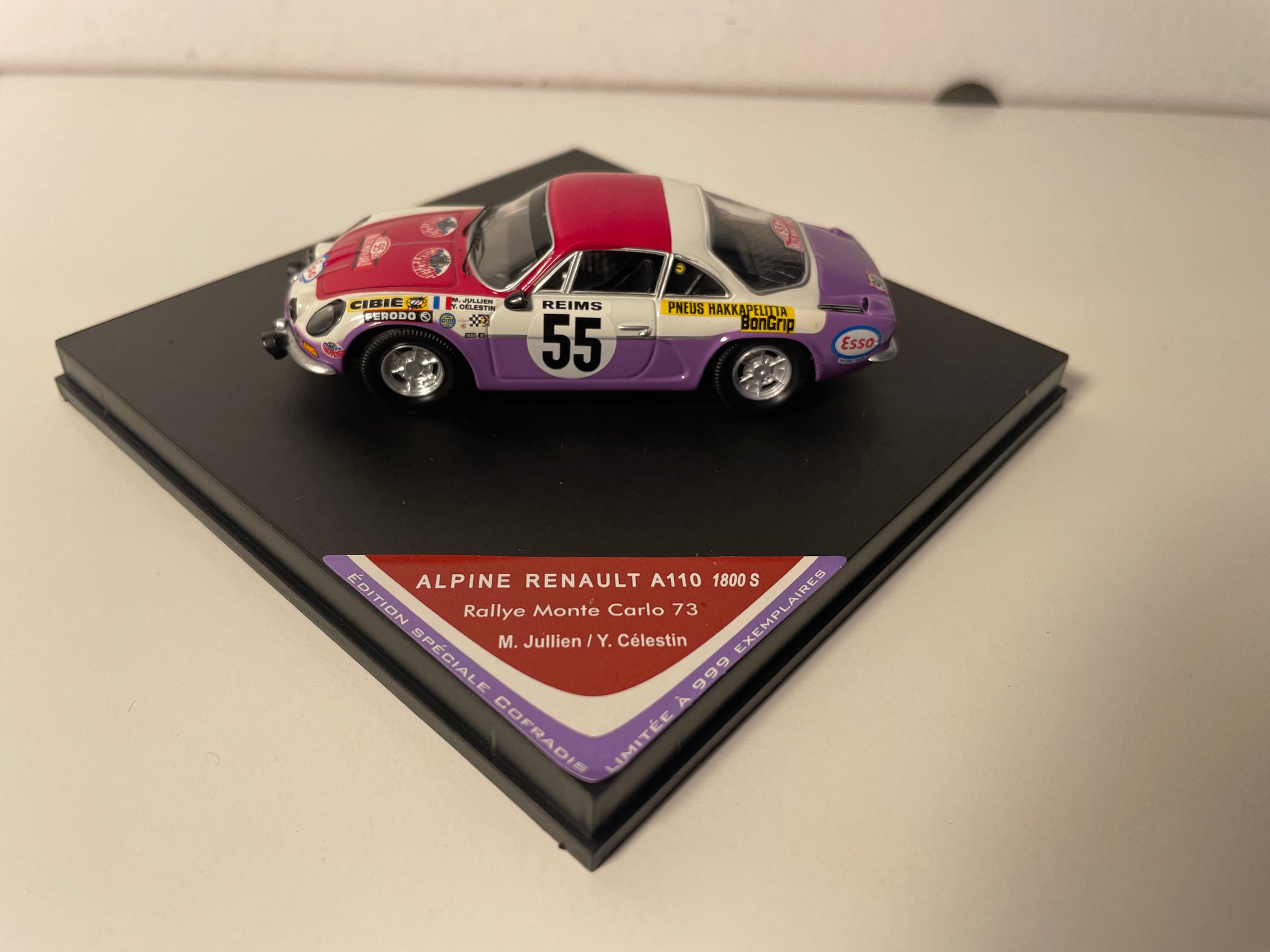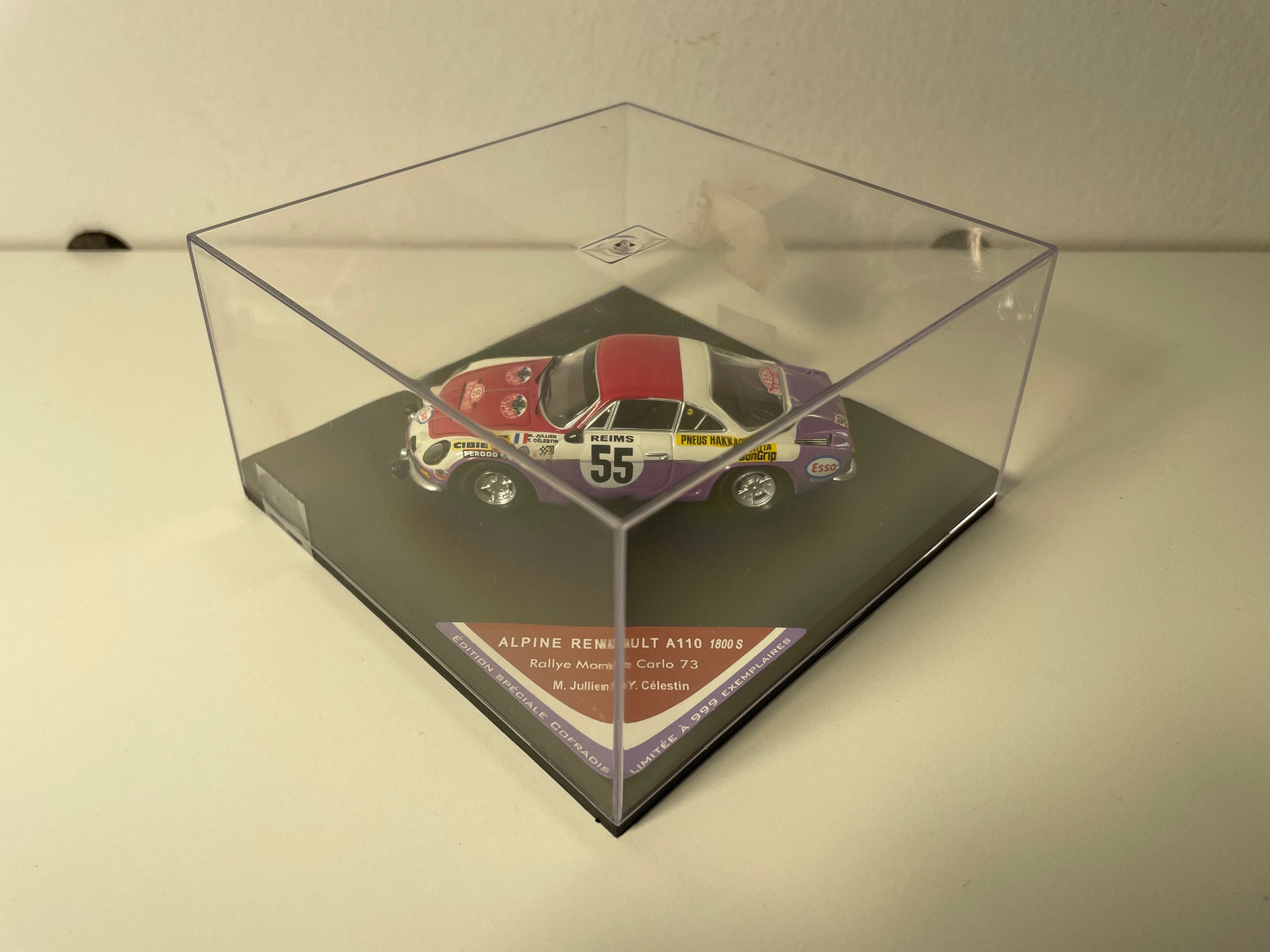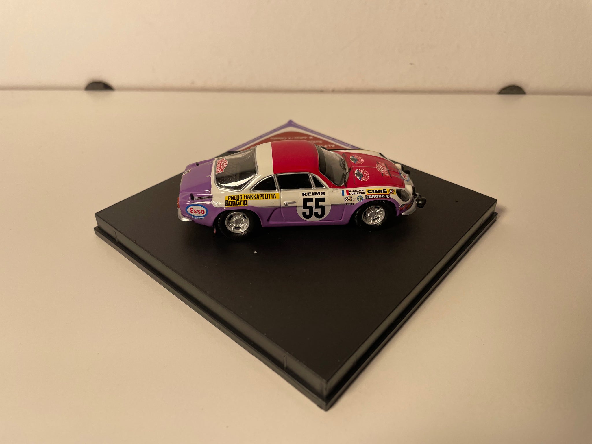 Este Alpine A110 TROFEU ocupa un lugar destacado en el mundo de las miniaturas de rally. Su distintiva librea tricolor y su número 55 la convierten en una pieza única que dialoga perfectamente con los otros modelos de la gama Alpine-Renault. Los coleccionistas apasionados apreciarán la precisión de los detalles y la autenticidad de esta reproducción.