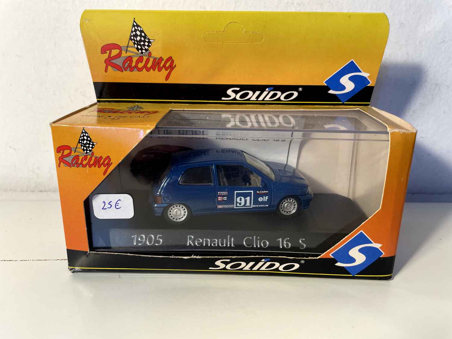Coche en Miniatura Renault Clio 16S azul con el número 91 (con caja de cartón amarilla) - Solido referencia N°1905
