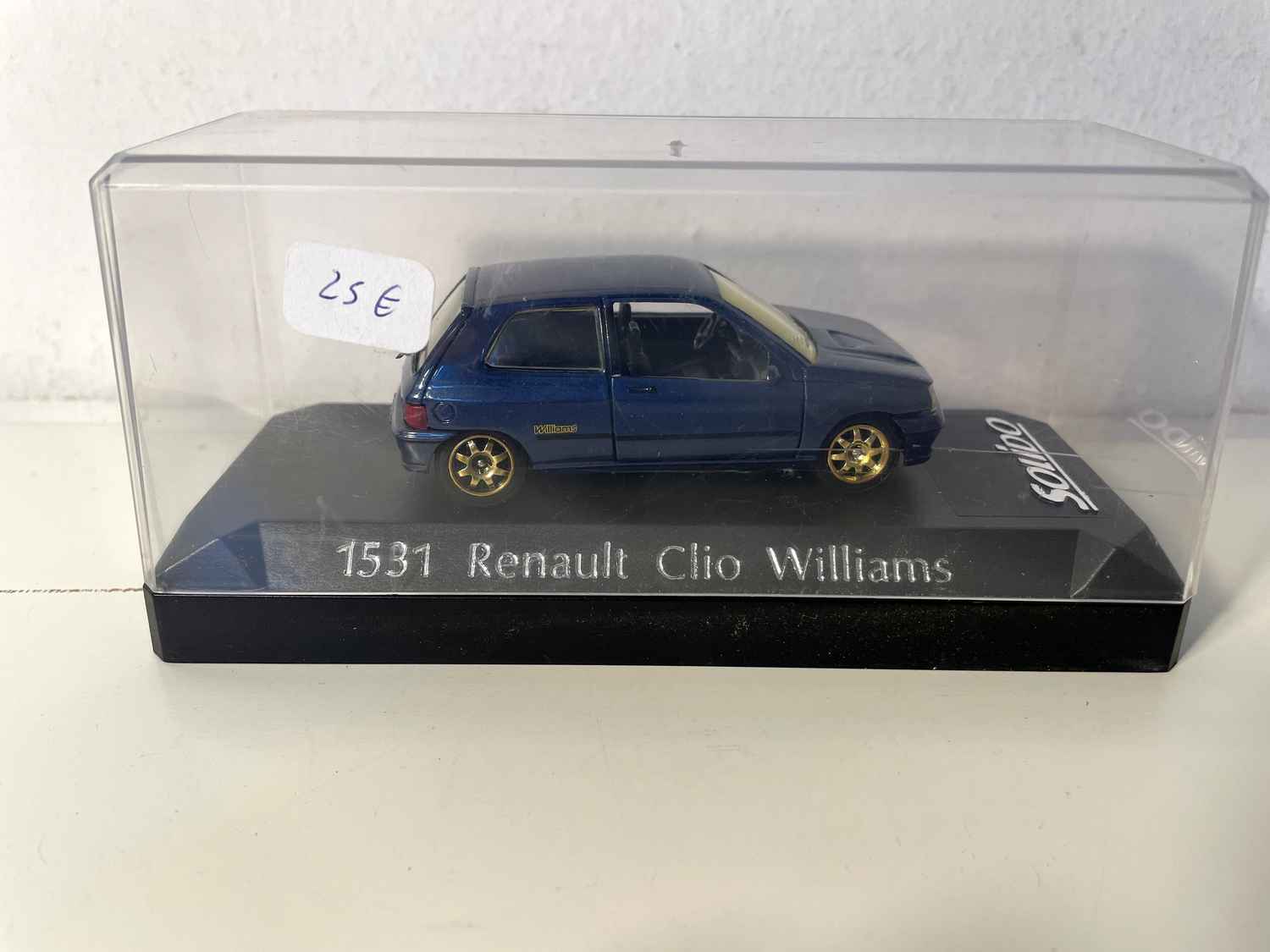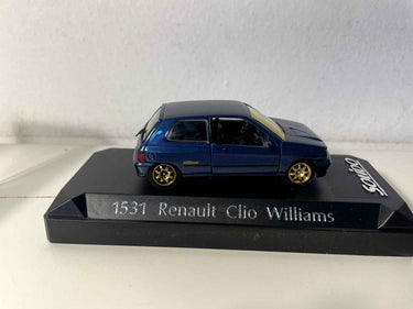 Aquí hay una miniatura que hace latir el corazón de los amantes de los automóviles franceses: la Renault Clio Williams en su icónico color azul. Esta reproducción fiel de Solido (referencia N°1531) captura perfectamente la esencia de este legendario deportivo que marcó la década de los 90.