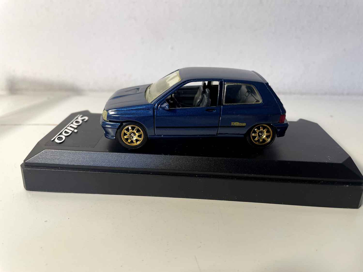 Coche en Miniatura Renault Clio Williams azul (Solido referencia N°1531) en caja de cartón violeta