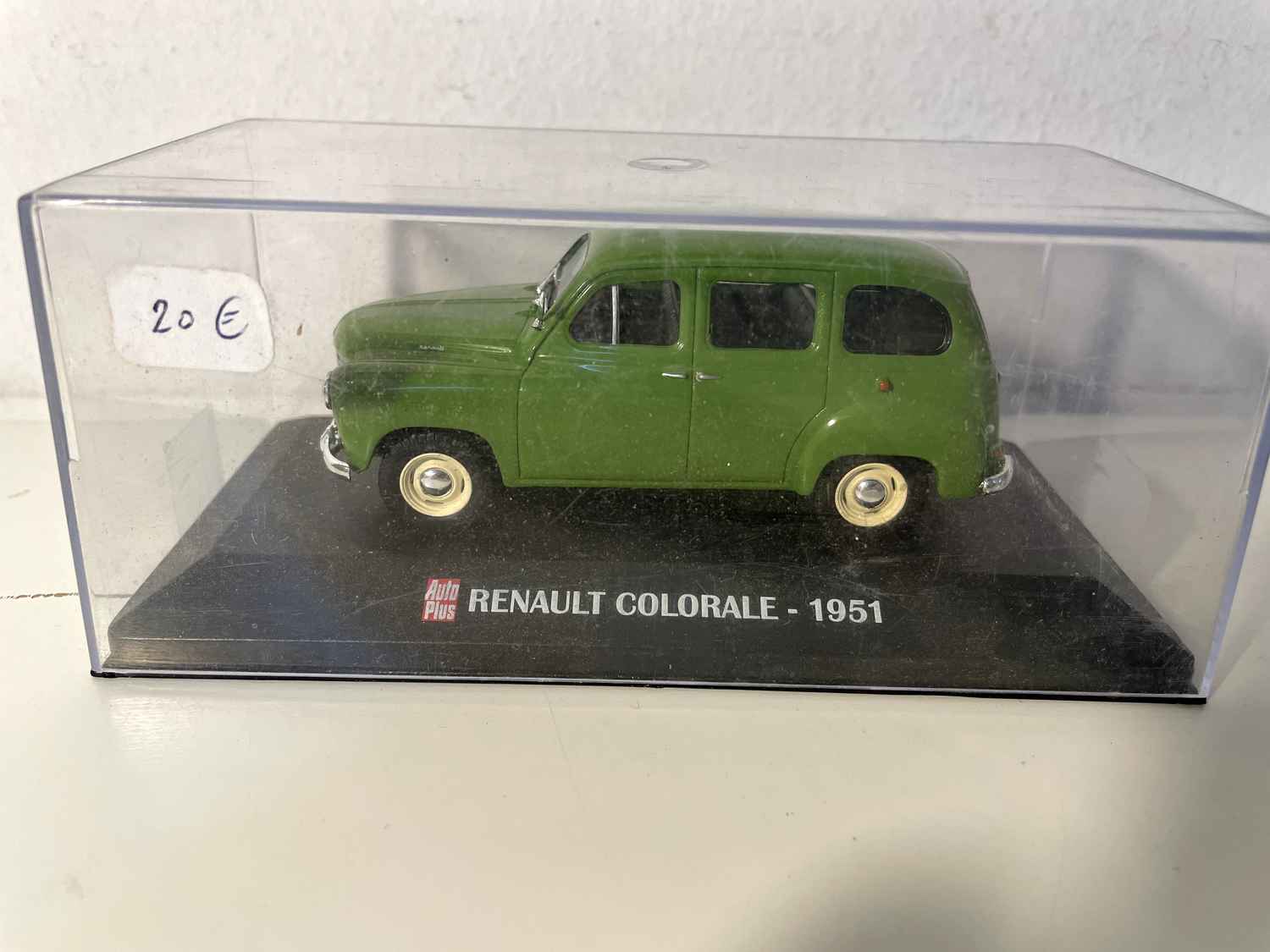 El Renault Colorale verde de 1951 representa uno de los modelos más singulares de la historia del automóvil francés. Esta maqueta a escala 1:43 captura a la perfección la esencia de este vehículo atípico, que marcó una importante transición en la producción de Renault de la posguerra.