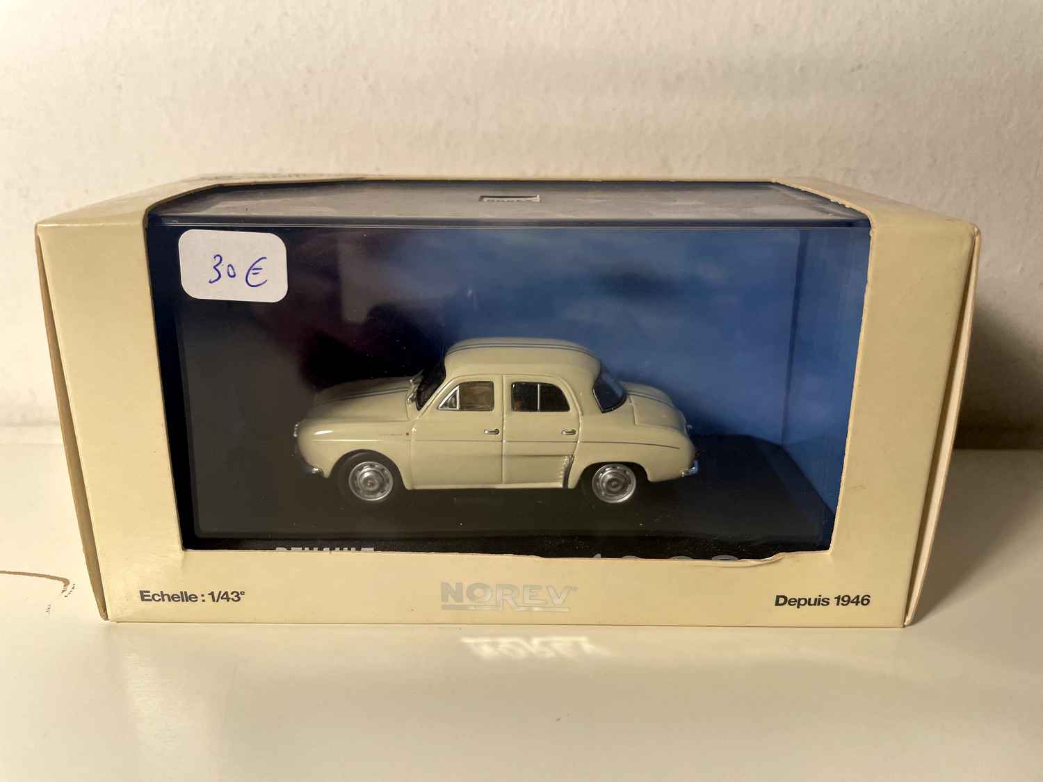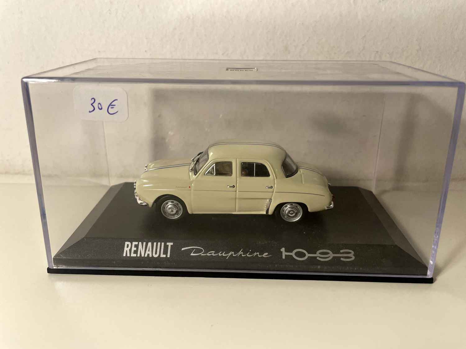 Descubre esta magnífica reproducción del Renault Dauphine 1093 en beige adornado con franjas azules, ofrecido por el fabricante francés NOREV. Esta miniatura a escala 1/43 captura maravillosamente la elegancia de esta emblemática berlina que marcó las décadas de 1950 y 1960.