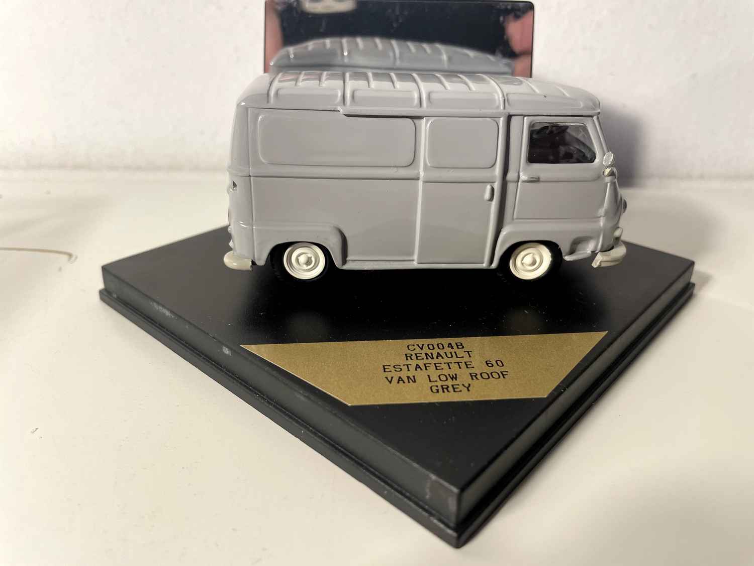 Descubre este magnífico Furgón Renault Estafette 60 en color gris, una reproducción fiel de la famosa furgoneta francesa que ha dejado huella en la historia del automóvil comercial. Esta miniatura a escala 1/43 captura perfectamente la esencia de este icónico vehículo con su característico techo bajo y su auténtica carrocería chapada.
