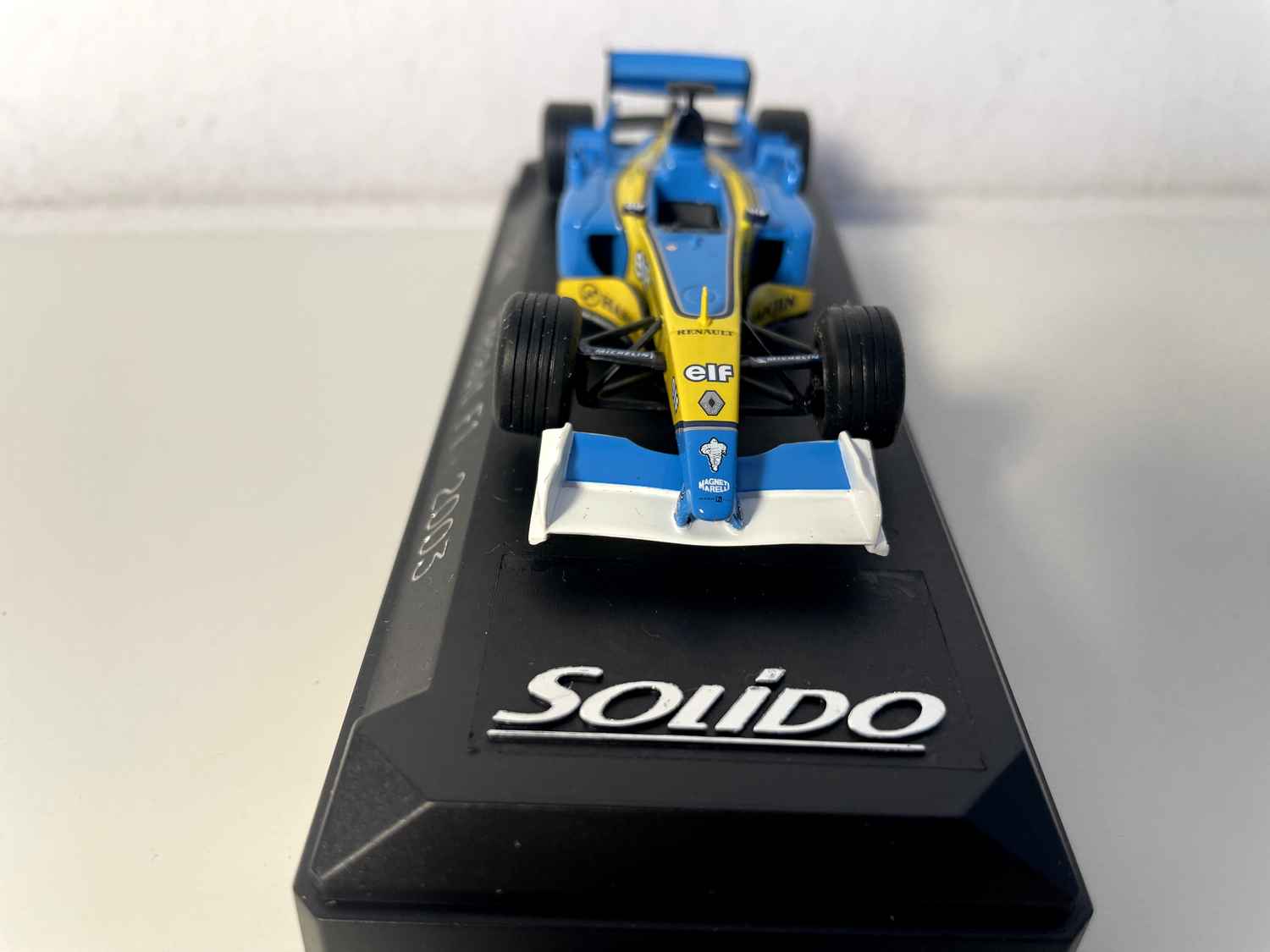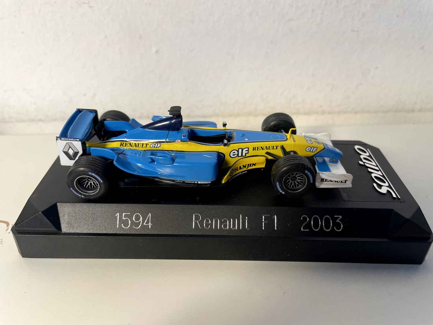 Coche en Miniatura Renault F1 azul y amarillo de 2003 (Fórmula 1) - Referencia Solido 1594