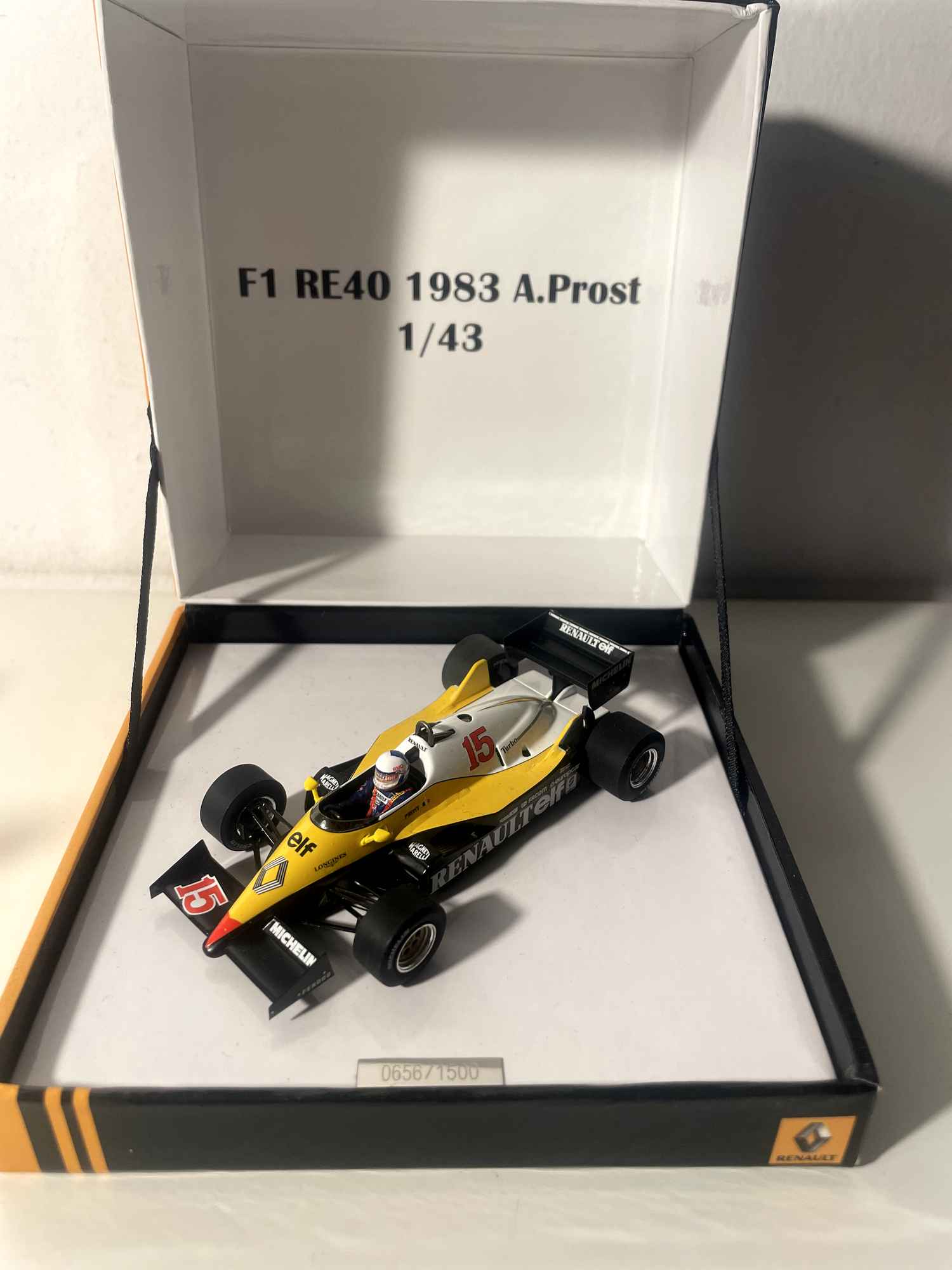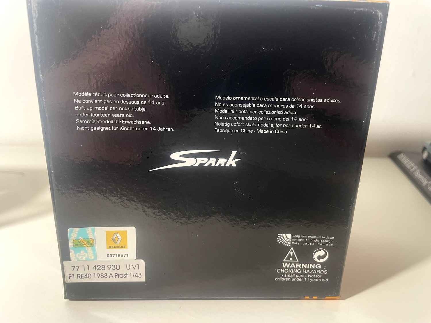 Descubra el Renault F1 RE40 de Alain Prost de 1983, fielmente reproducido por Spark en esta edición limitada (n.º 656/1500). Esta maqueta a escala 1:43 captura el espíritu competitivo de uno de los monoplazas más emblemáticos de la historia de la Fórmula 1 francesa.