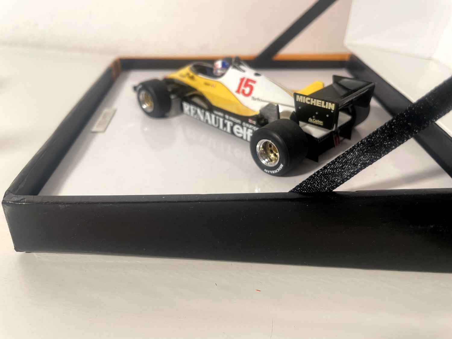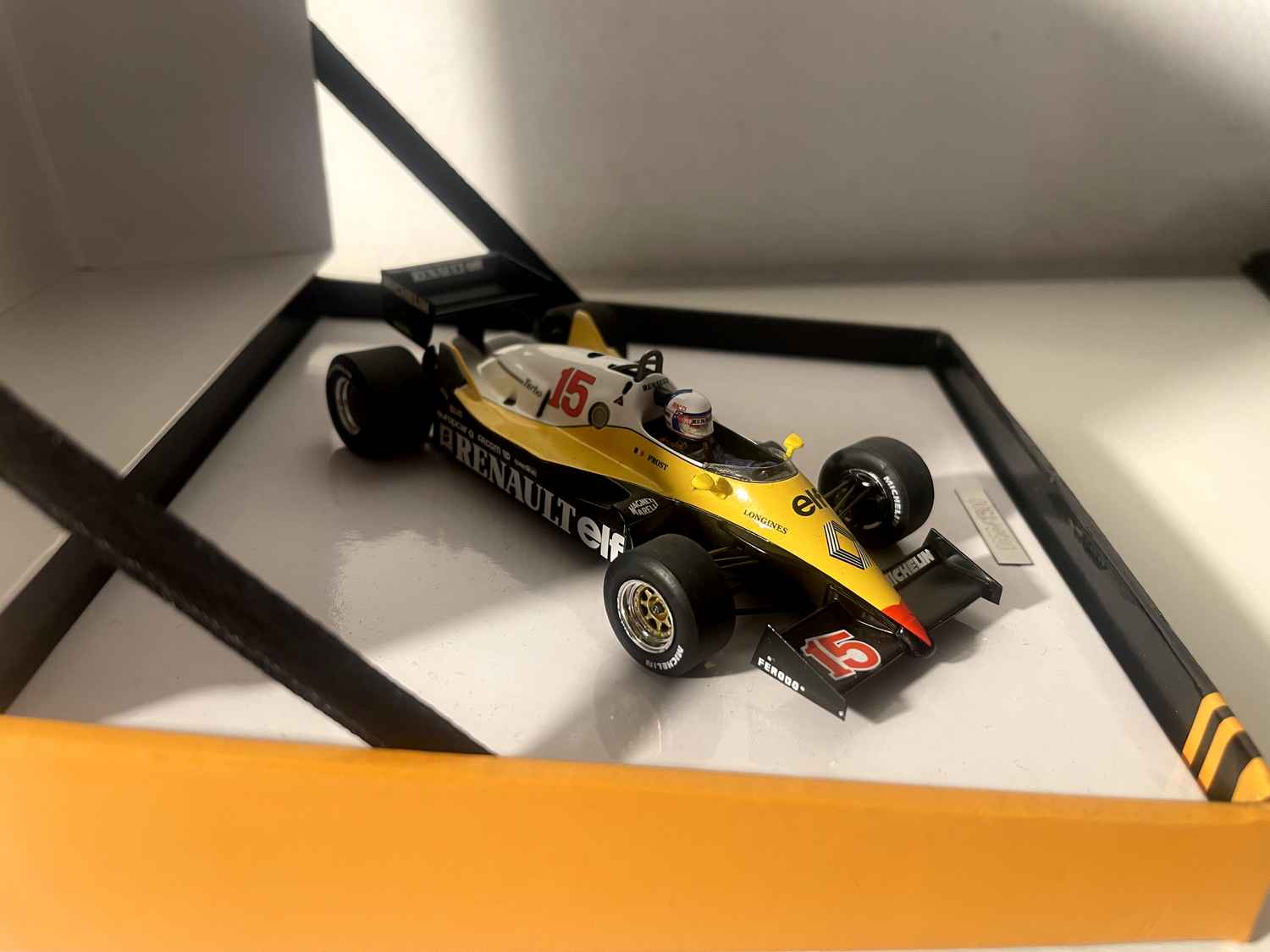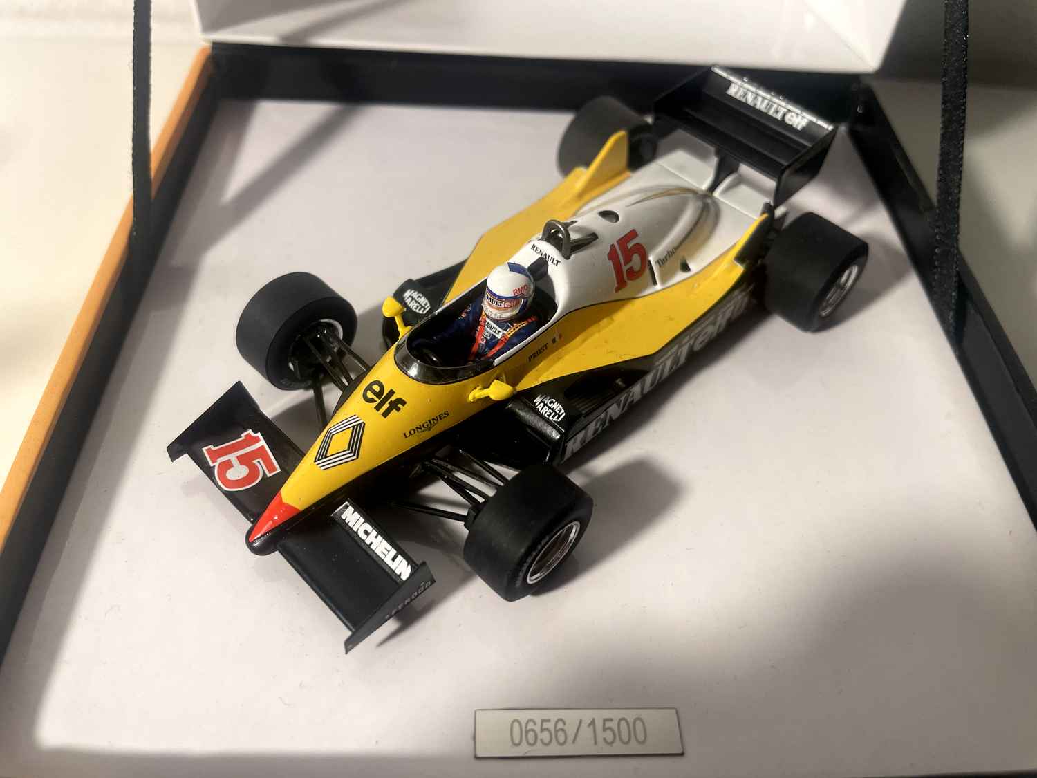 Esta reproducción excepcional es testimonio de una época dorada en la que Renault revolucionó la disciplina con sus motores turbo y cuando Alain Prost comenzó a forjar su leyenda como piloto excepcional.