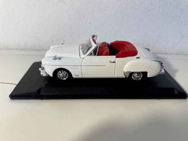 Este magnífico Renault Frégate cabriolet en miniatura nos transporta a la elegancia francesa de los años 50. Reproducido fielmente a escala 1/43 por Eligor, esta versión cabriolet blanca captura a la perfección el refinamiento de este modelo emblemático que marcó la entrada de Renault en el segmento de lujo.