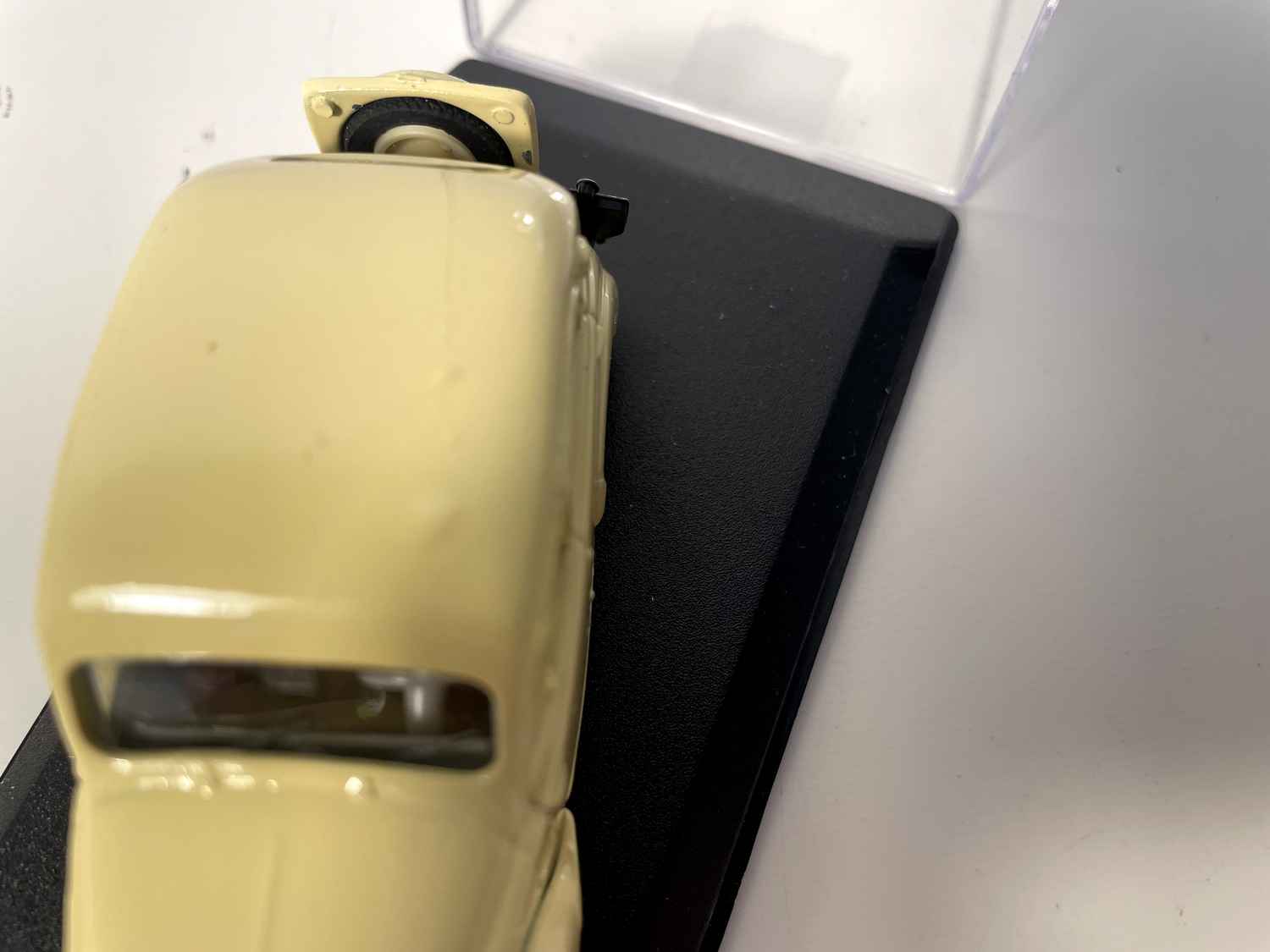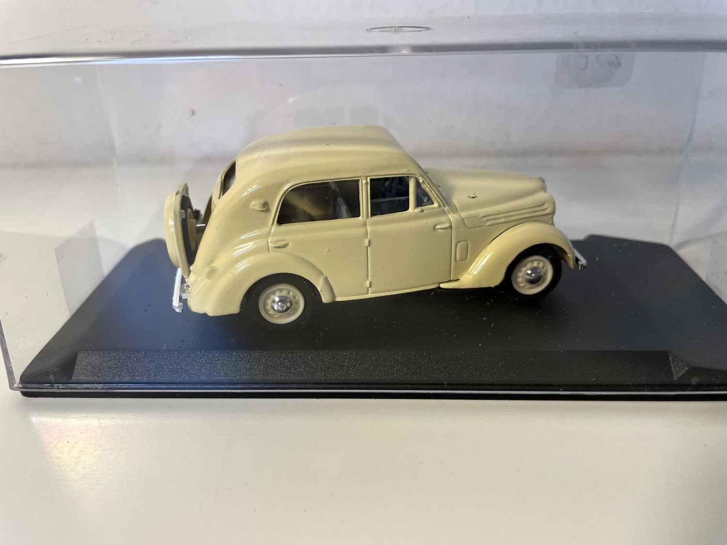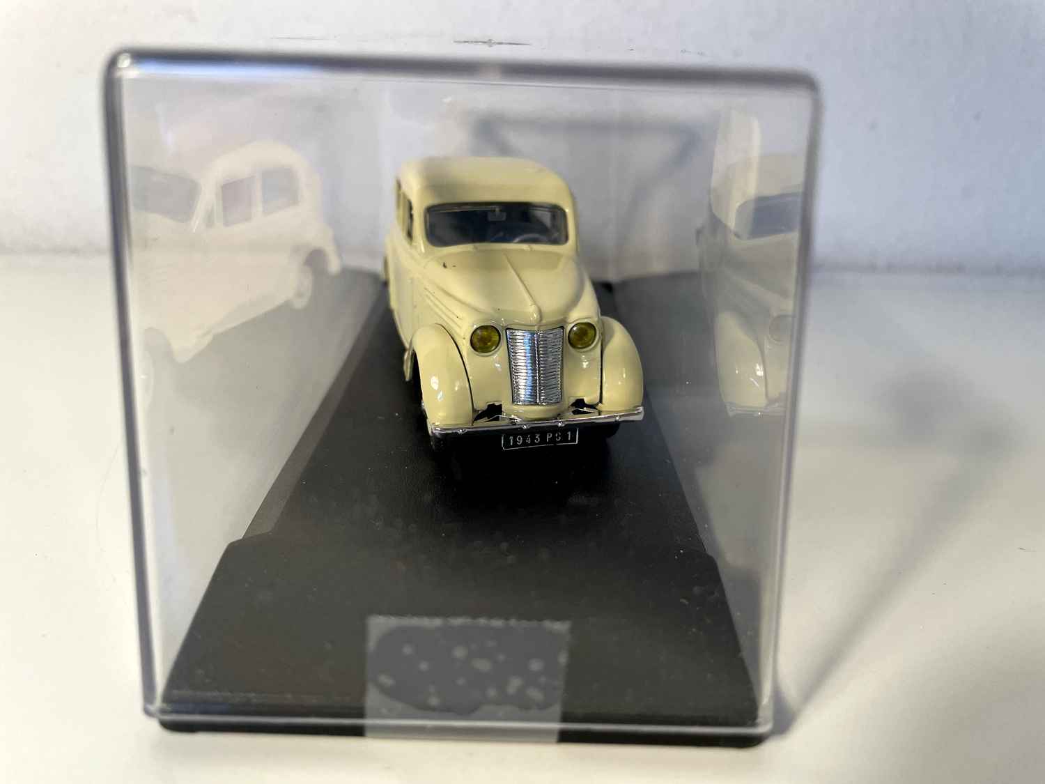 Aquí tenemos un Renault Juvaquatre beige de 1939 que nos transporta directamente a la época francesa de preguerra. Esta miniatura a escala 1:43 captura fielmente el espíritu de un automóvil que dejó una profunda huella en la historia de la industria francesa, encarnando la audacia técnica de Renault en vísperas de la Segunda Guerra Mundial.