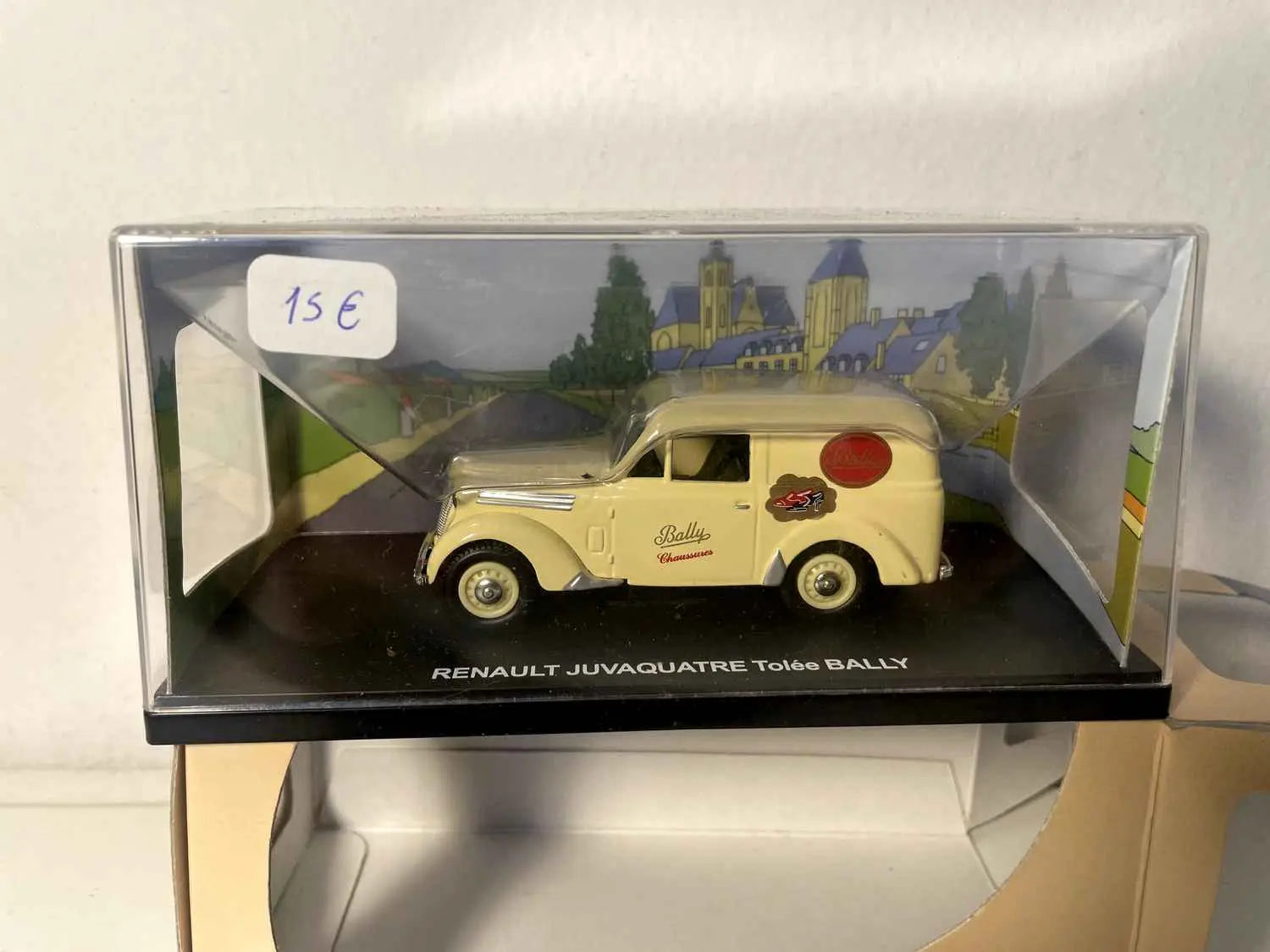 Renault Juvaquatre beige tolé con publicidad BALLY - Una miniatura excepcional