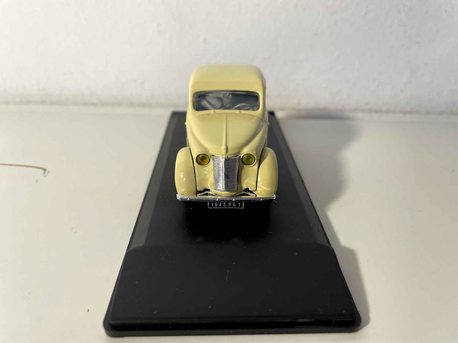 Lanzada en octubre de 1937, el Renault Juvaquatre es la respuesta del fabricante de Billancourt a los Citroën Traction Avant y Peugeot 202 que dominaban el mercado de los coches populares. Diseñada bajo la dirección de Fernand Picard, esta berlina de cuatro puertas presenta líneas modernas para la época, con sus faros integrados en los guardabarros y su característica parrilla cromada.