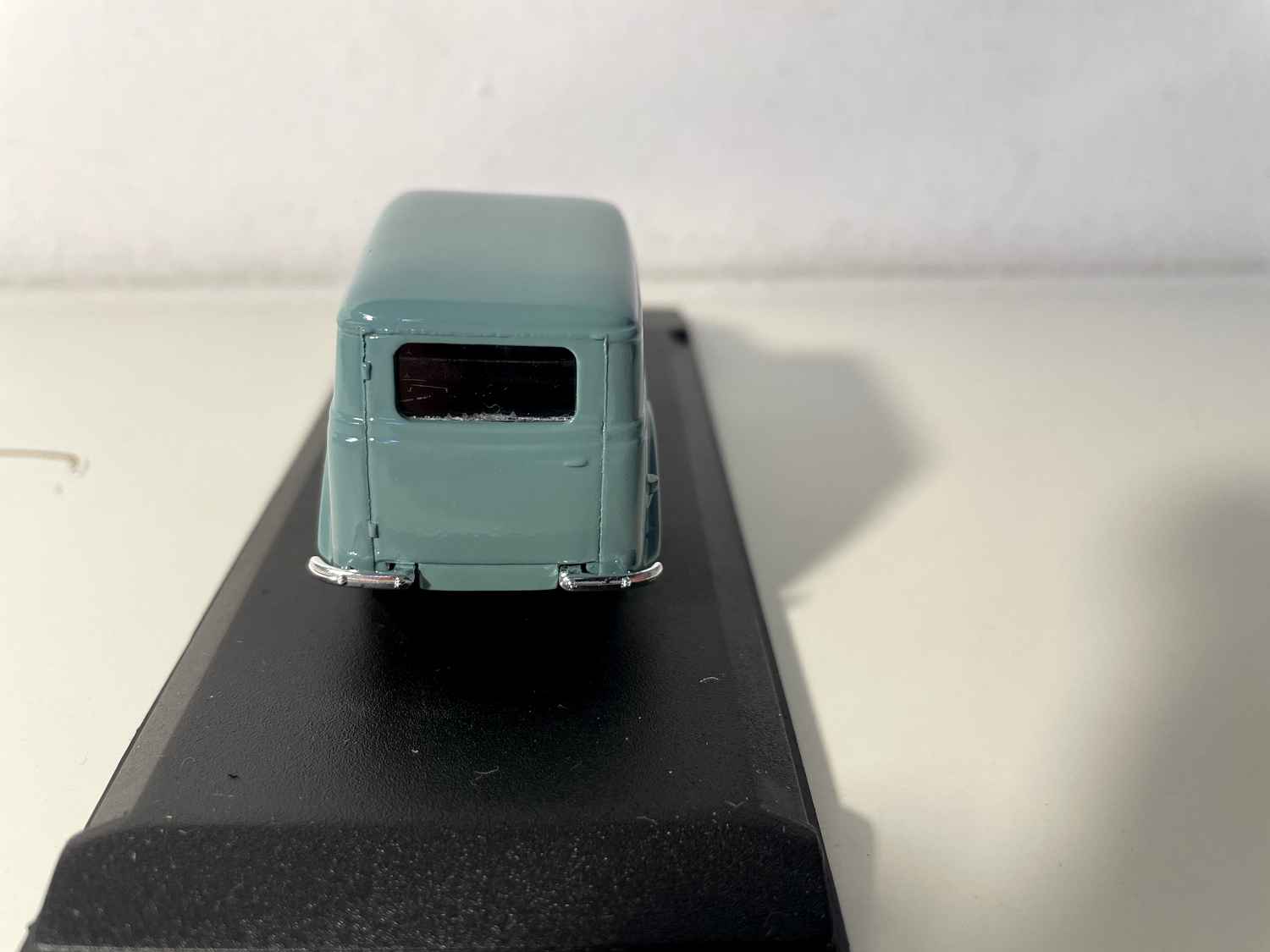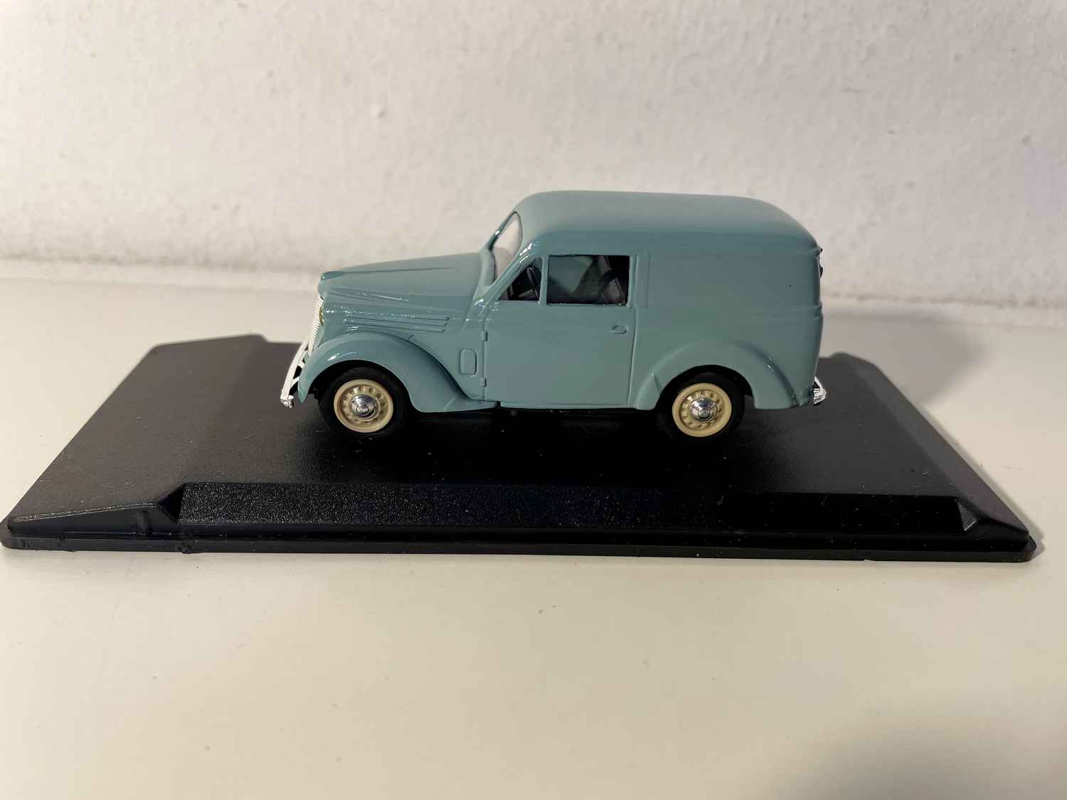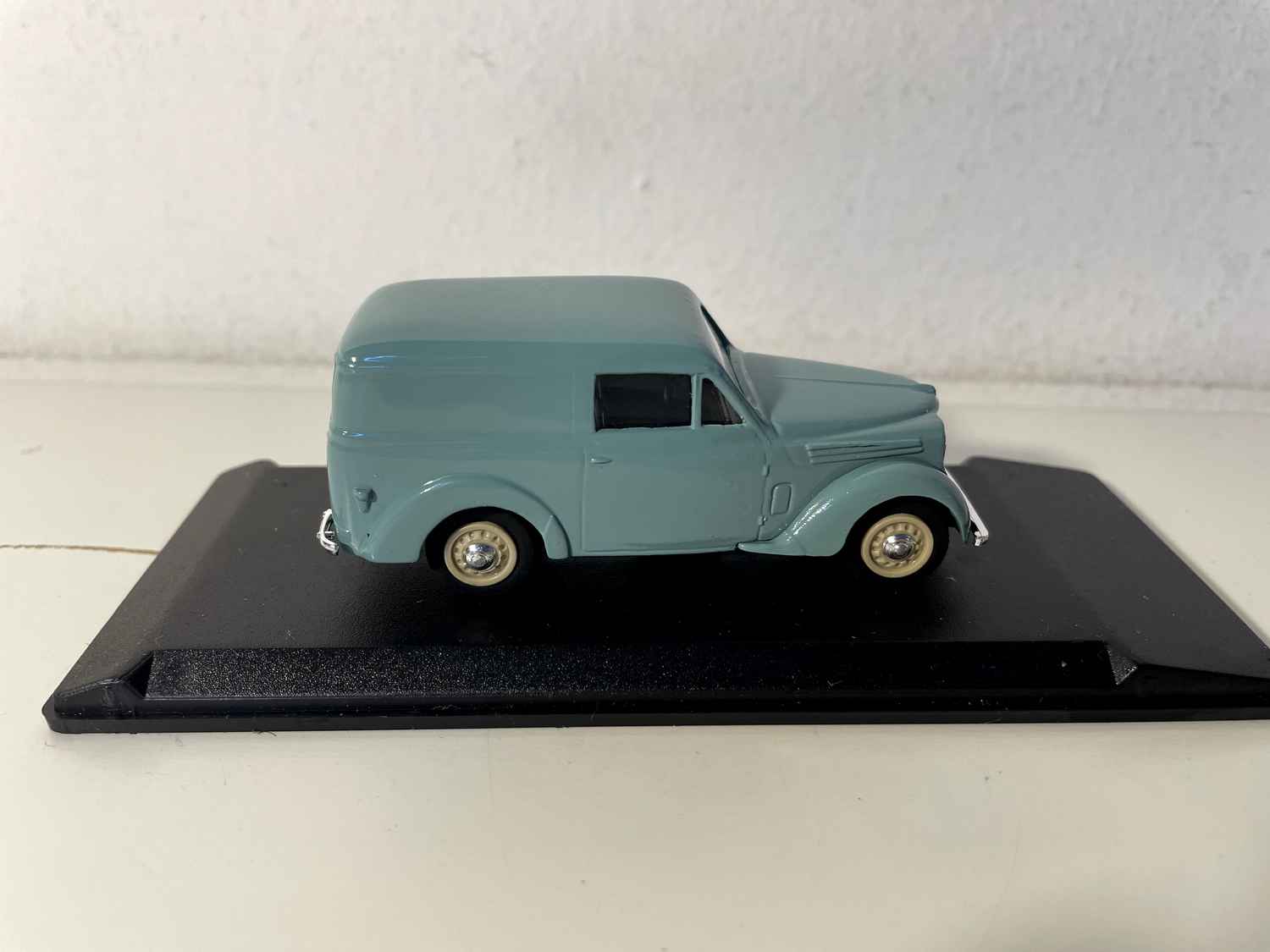 Equipada con un motor de 4 cilindros de 1003 cm³ que desarrolla 23 caballos de fuerza, esta furgoneta ofrece una carga útil de 400 kg y se destaca por su robustez y facilidad de mantenimiento. Su carrocería de chapa integral protege eficazmente las mercancías, mientras que sus dimensiones compactas le permiten circular con facilidad en entornos urbanos. La suspensión delantera independiente, una innovación notable para la época, mejora significativamente el confort de conducción en las a menudo deterioradas carreteras de la posguerra.