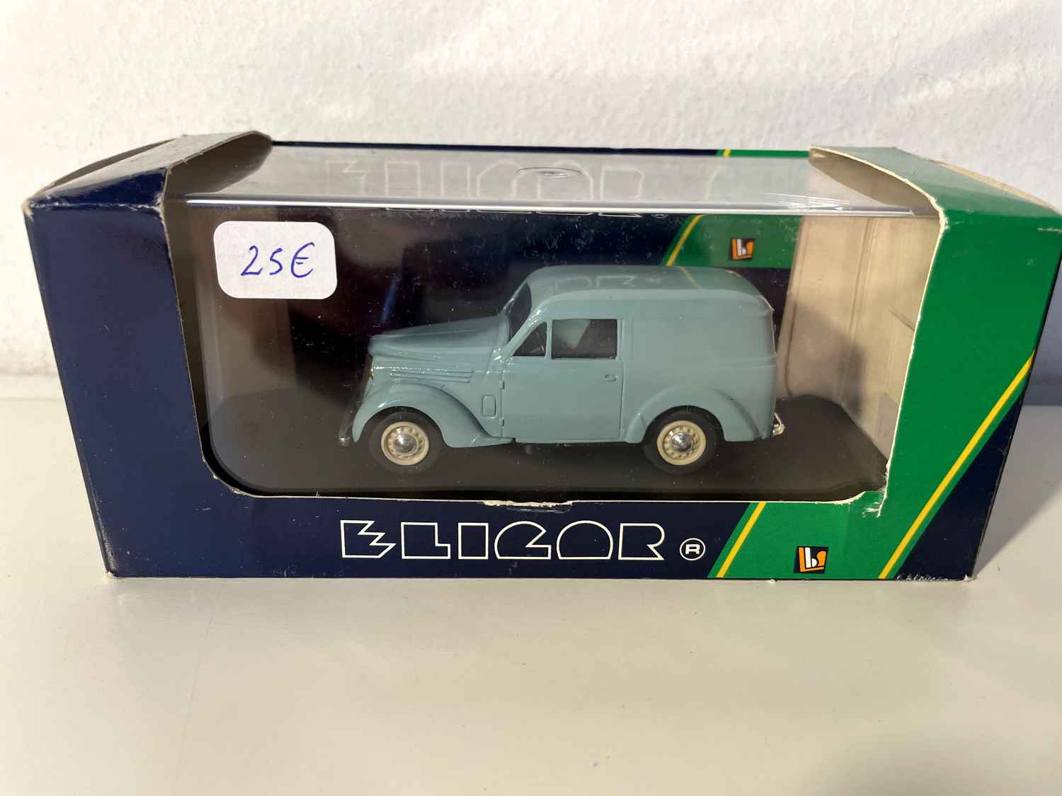 Descubra esta maravillosa reproducción de la Renault Juvaquatre furgoneta de chapa, fielmente reproducida por Eligor en su brillante color azul y gris de la época. Esta miniatura captura a la perfección la esencia de este emblemático vehículo de trabajo que marcó la industria automovilística francesa de los años 30 y 40.