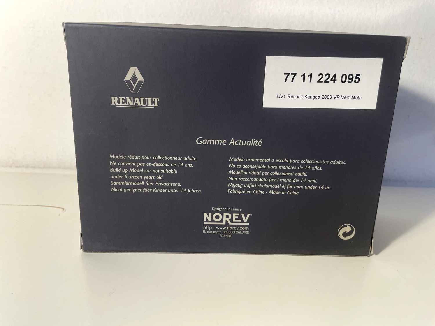 Descubre esta magnífica miniatura Renault Kangoo 1.5l dCi realizada por NOREV, presentada en un elegante tono verde oscuro. Este modelo reproduce fielmente uno de los vehículos utilitarios más populares de la gama Renault, capturando la esencia misma de este vehículo versátil que ha marcado las carreteras francesas y europeas.