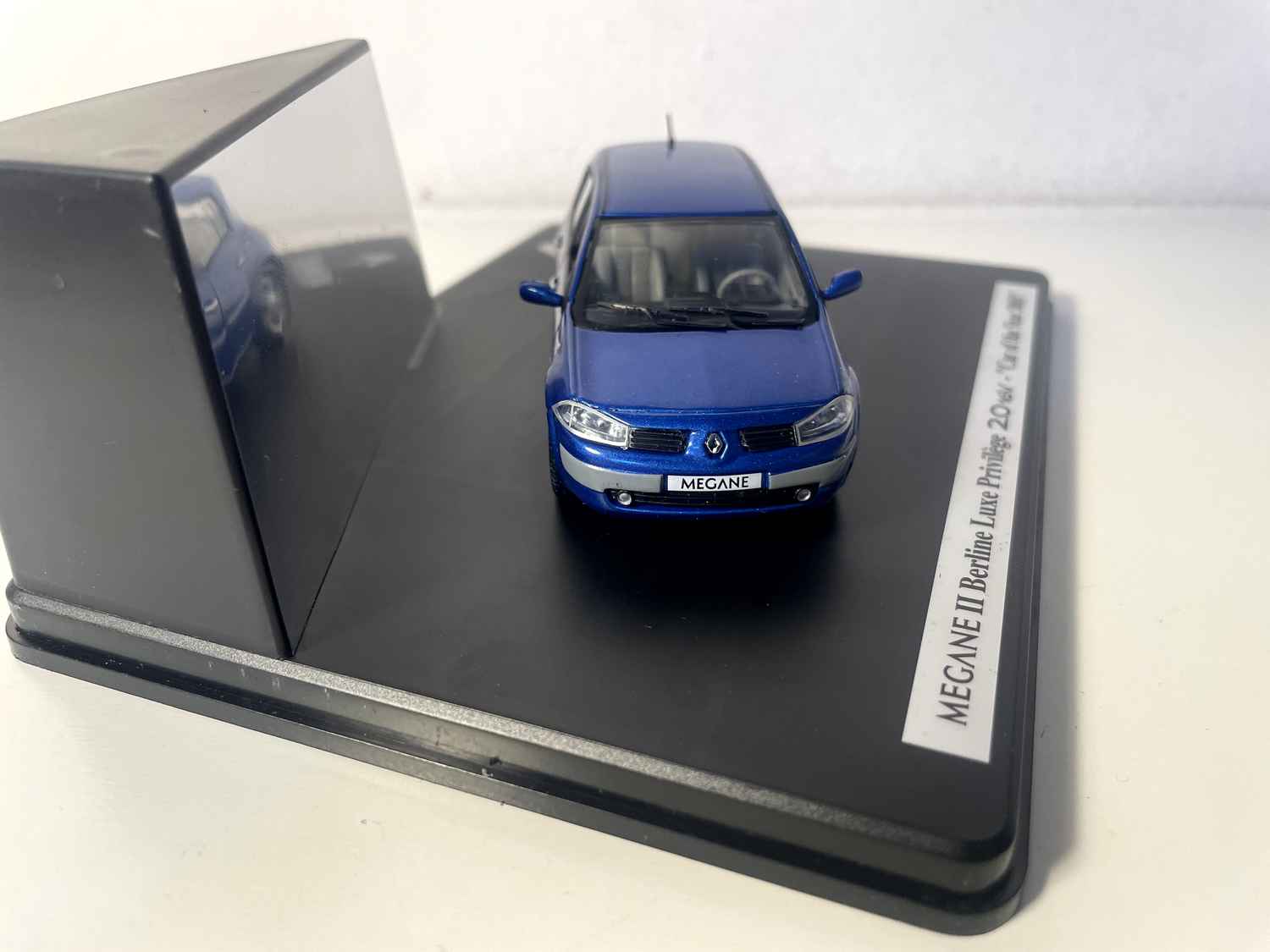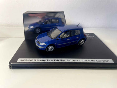 Coche en Miniatura Renault Mégane 2 Berlina Luxe Privilège 2.0 16V azul (coche del año 2003) (caja rectangular) - ELIGOR