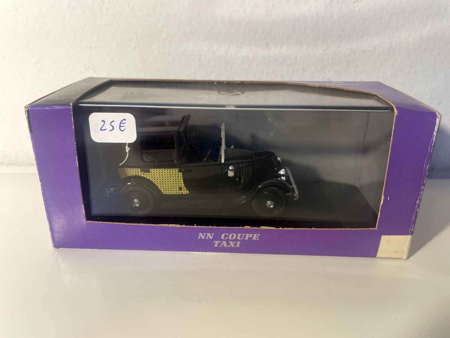 Descubre esta magnífica reproducción en miniatura del Renault NN Coupé, emblemático taxi parisino de los años 1920, en su distintiva livery negra y damero amarillo. Esta miniatura Eligor captura perfectamente la esencia de esta era dorada de la automoción francesa, cuando los taxis parisinos recorrían los bulevares de la capital con elegancia y distinción.
