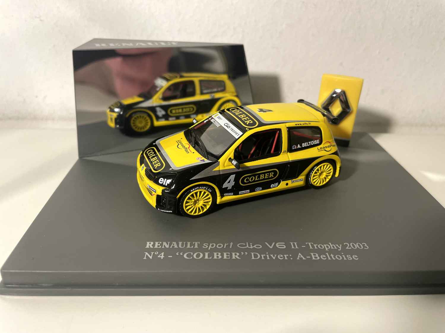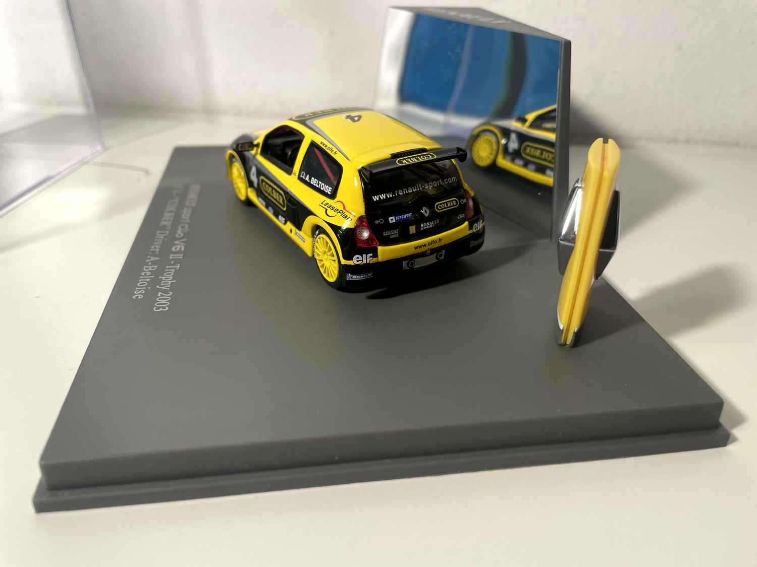 El número 4 de esta miniatura hace referencia a Anthony Beltoise , piloto francés que dejó huella en el campeonato Clio V6 Trophy. Hijo del legendario Jean-Pierre Beltoise, campeón francés de Fórmula 3 y ganador del Gran Premio de Mónaco de 1972, Anthony llevaba sobre sus hombros una excepcional herencia automovilística .