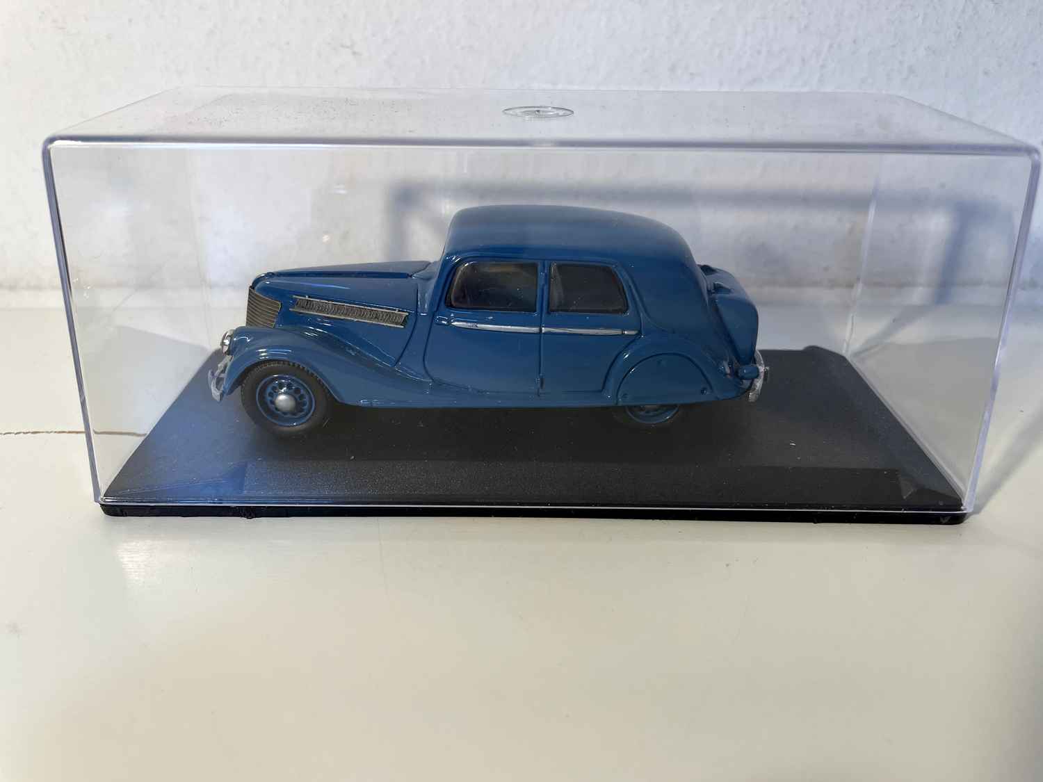 Descubre esta maravillosa miniatura Renault Viva Berline Grand Sport azul de 1939, una reproducción fiel que captura toda la elegancia del automóvil francés de antes de la guerra. Esta pieza excepcional, referenciada MINIROUTE 69, es testimonio de la pericia automotriz francesa a principios de los años 40.