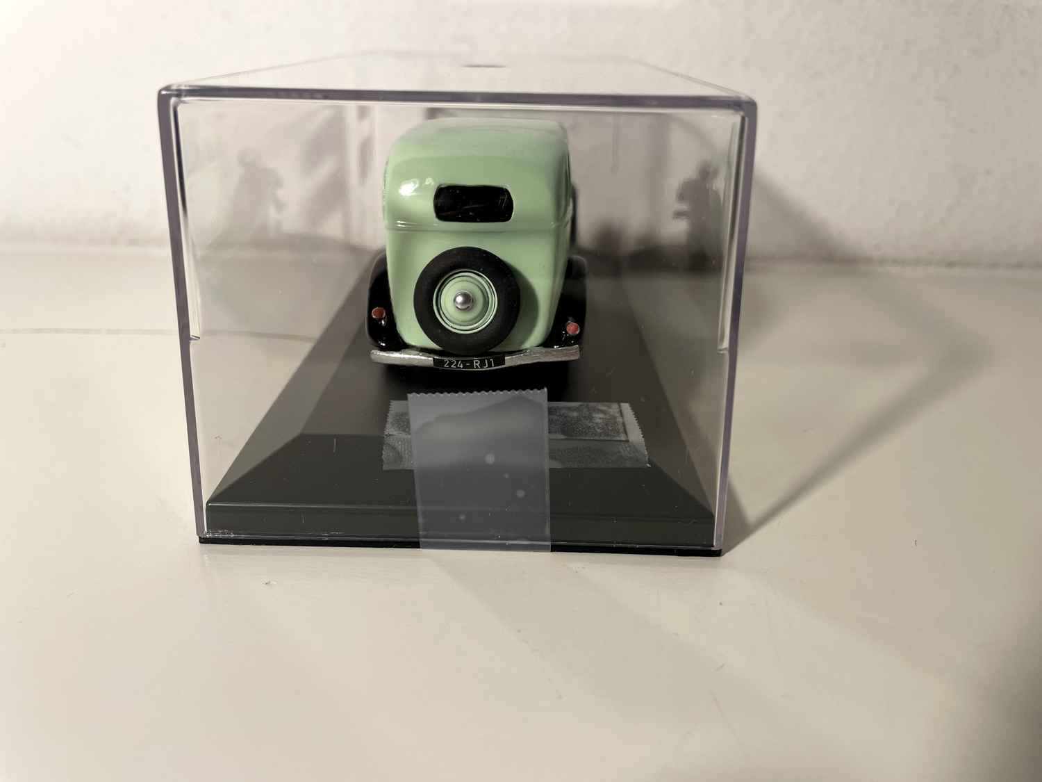 Esta miniatura Renault Vivaquatre en su tono verde pálido de época es un testimonio notable de la industria automotriz francesa de los años 30. Reproducida con un cuidado al detalle característico de las mejores realizaciones en miniatura, captura perfectamente la elegancia sobria de esta berlina familiar que marcó su época.