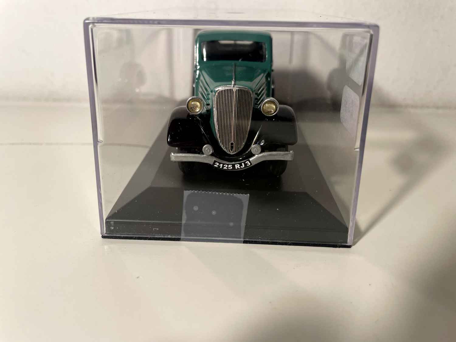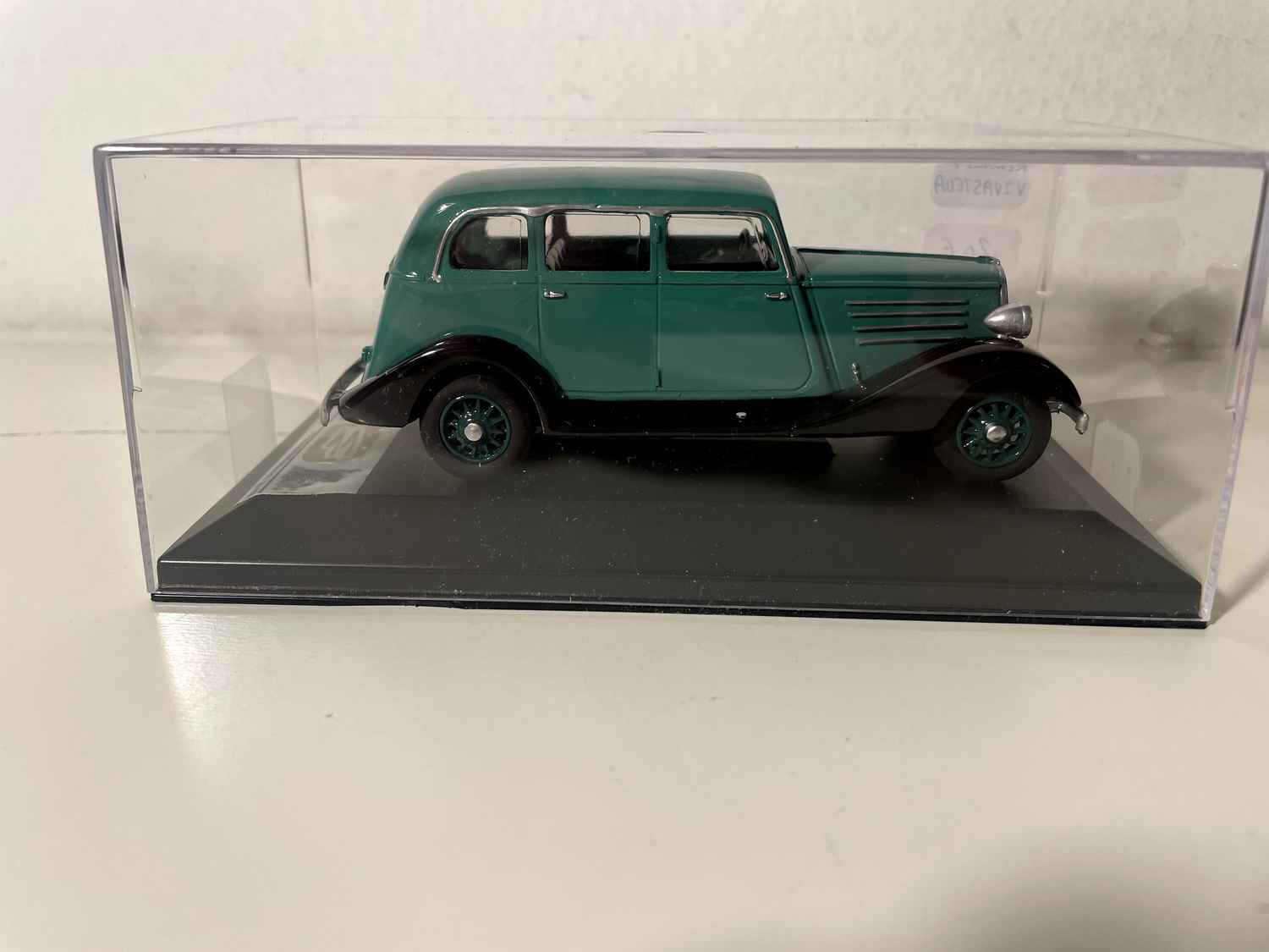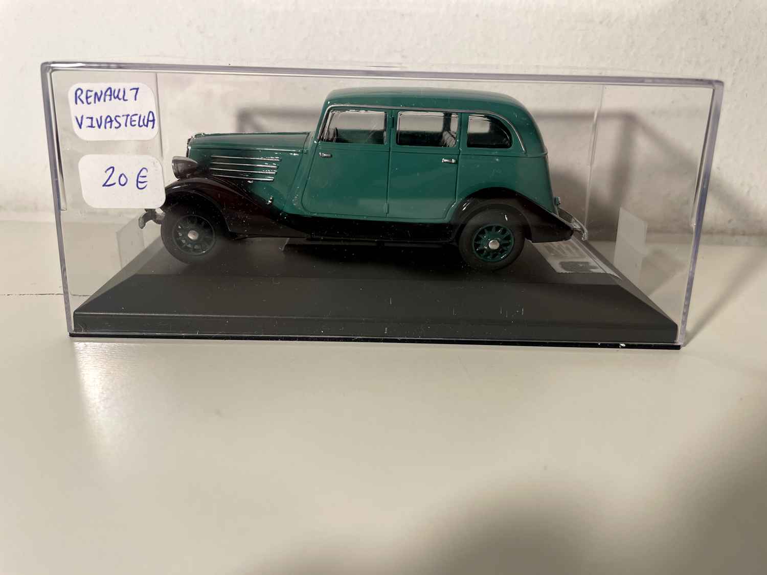 Esta miniatura Renault Vivastella verde oscuro a escala 1/43 representa uno de los automóviles más prestigiosos del periodo de entreguerras francés. Reproducción fiel de un modelo emblemático de los años 30, esta pieza de colección captura perfectamente la elegancia y el refinamiento de esta berlina de lujo que marcó la historia de Renault.
