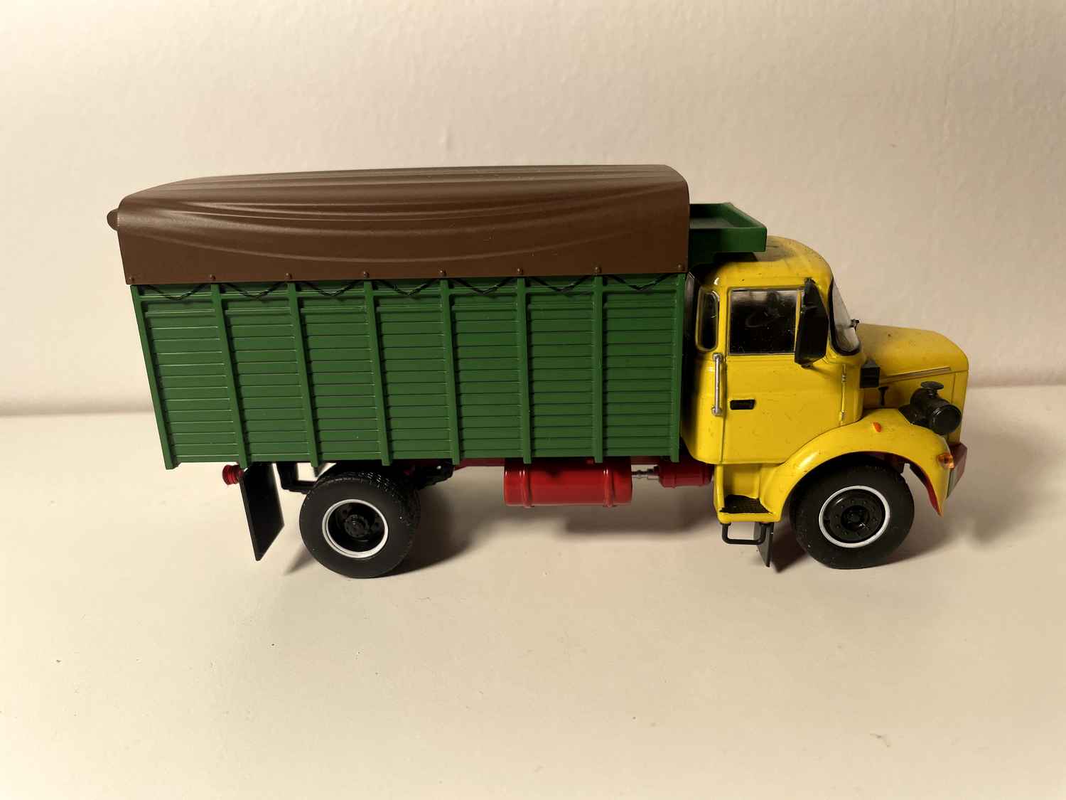- Colore: Cabina gialla, cassa verde, telone marrone