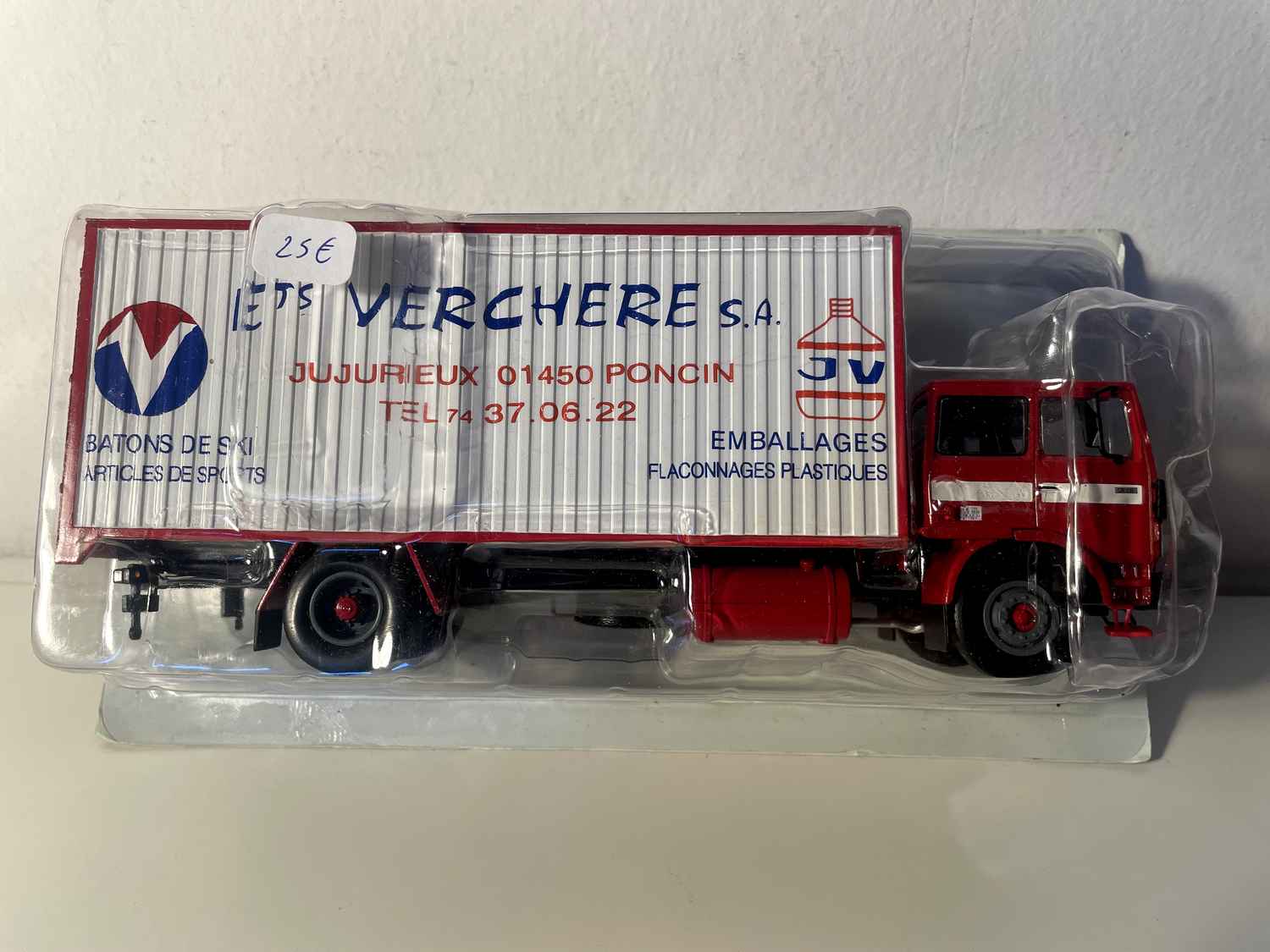 Scopri questa magnifica miniatura del camion Berliet GR 231 nei colori autentici dei Trasporti Establissement Verchère S.A. Questa riproduzione fedele cattura l'essenza del trasporto su strada francese degli anni '60 e '70, epoca in cui questi robusti camion solcavano le strade esagonali.