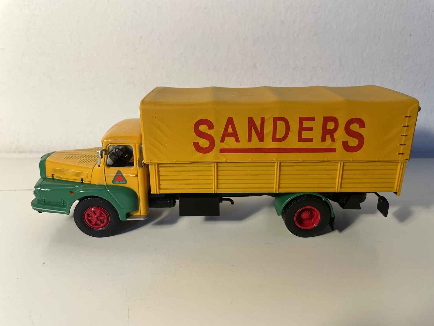La versione "Alpes" con la livrea SANDERS testimonia l'epoca gloriosa del trasporto su strada francese, quando questi colossi della strada assicuravano con straordinaria regolarità i rifornimenti alle regioni più remote.