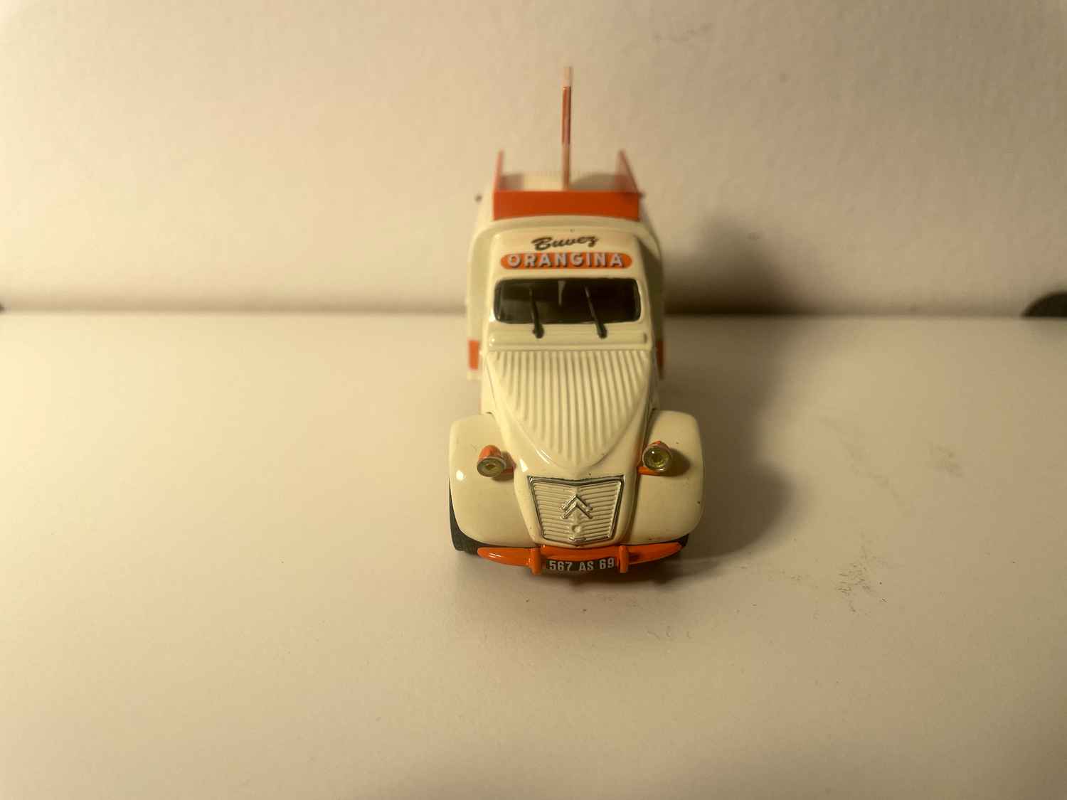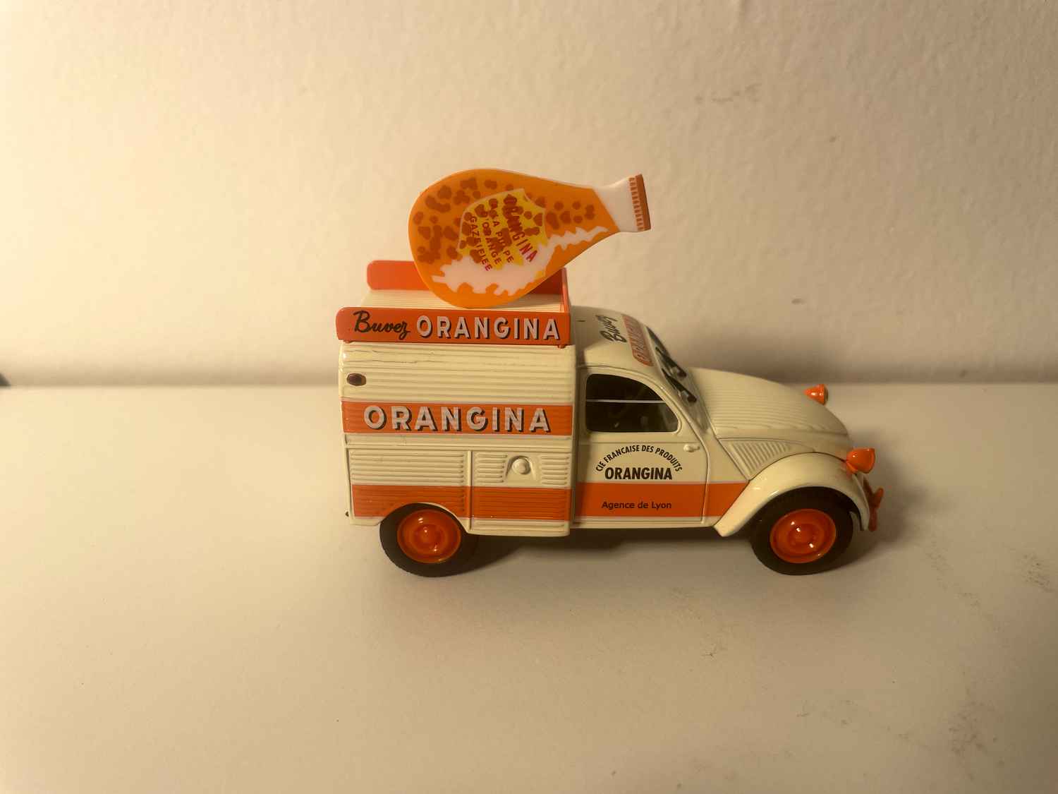 Questa Furgonetta Citroën 2 CV AZU Orangina trova naturalmente il suo posto nel cuore di una collezione dedicata ai veicoli Citroën o ai modelli pubblicitari francesi. Dialoga perfettamente con altre versioni di miniature 2 CV, creando un insieme coerente attorno a questa icona automobilistica.