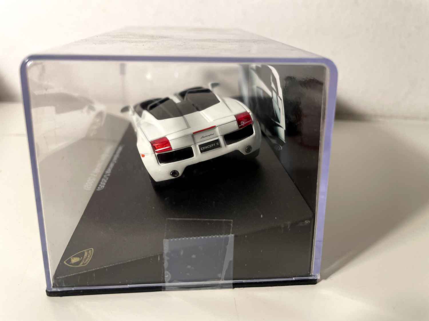 Scopri la Lamborghini Concept S del 2005 in questa magnifica miniatura in scala 1/43. Questa riproduzione fedele cattura tutto il coraggio e l'innovazione di questo prototipo unico che ha segnato la storia del marchio del toro. Vestita con il suo abito bianco immacolato, questa miniatura rivela ogni dettaglio di questa concept car rivoluzionaria che è esistita solo in un unico esemplare.