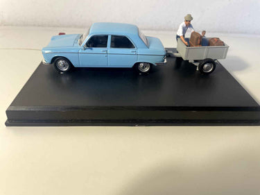 Modellini di Auto Peugeot 204 blu con rimorchio