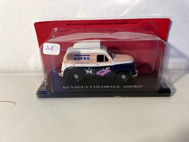 Questa miniatura di Renault Colorale ASPRO rappresenta uno dei veicoli commerciali più iconici della Francia del dopoguerra. Con la sua livrea tricolore blu, rosa e bianco, nei colori del celebre marchio farmaceutico, questa riproduzione fedele cattura perfettamente lo spirito pubblicitario degli anni '50.
