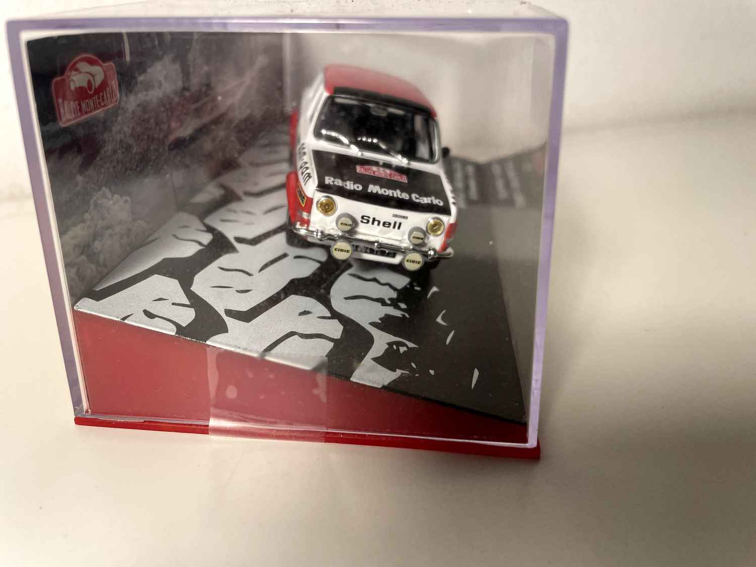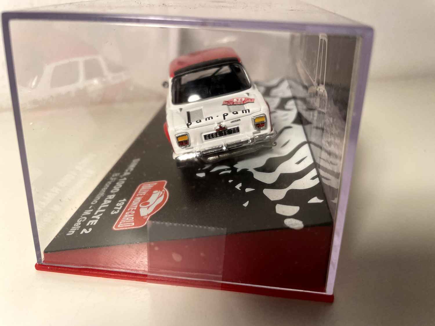 Modellini di Auto Simca 1000 rallye 2 bianca, nera e rossa numero 34 - Rally di Monte Carlo 1973