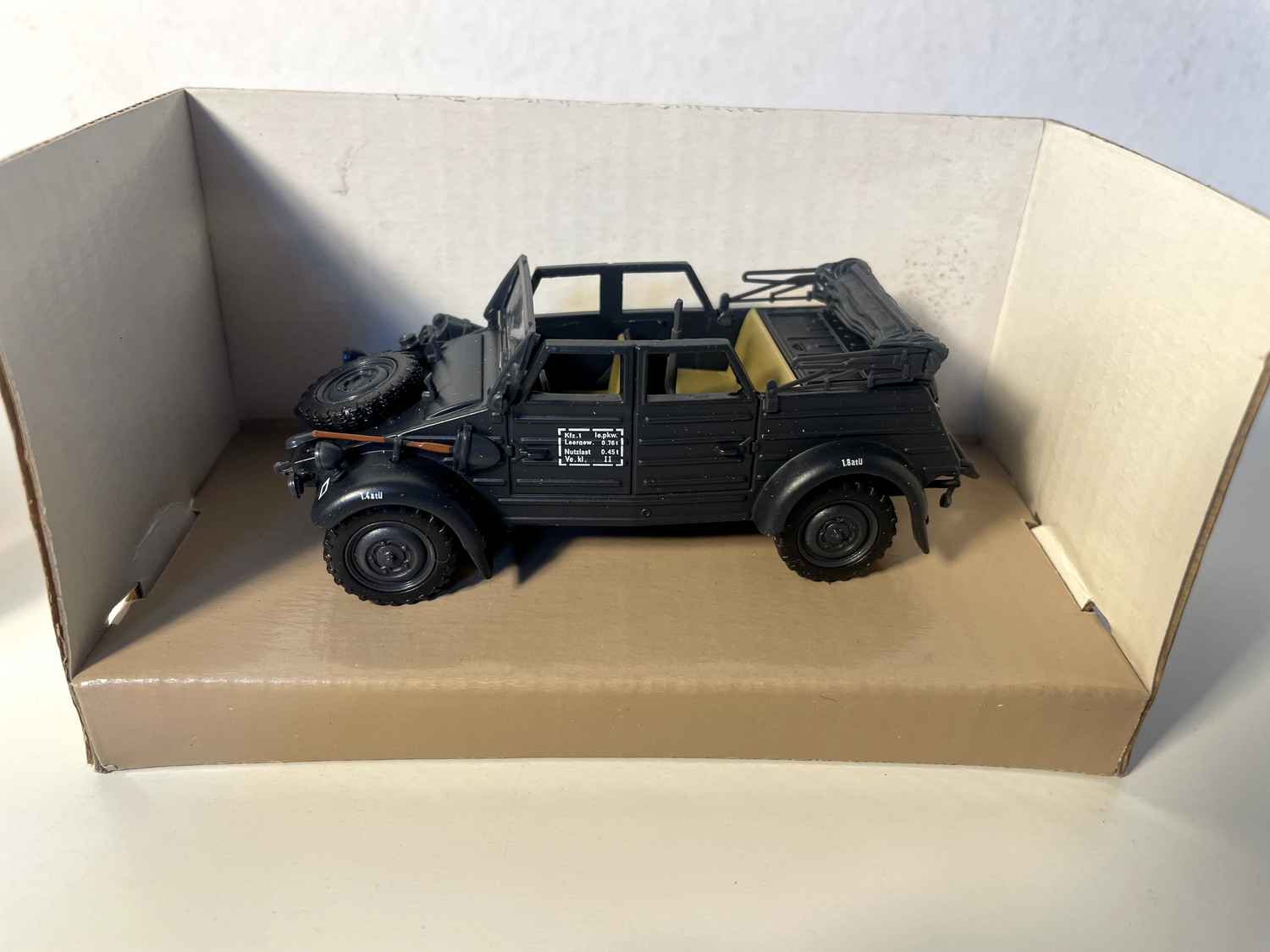 Questa miniatura di Kübelwagen occupa un posto speciale nel mondo delle riproduzioni automobilistiche . È apprezzata sia dagli appassionati di storia militare che dai collezionisti Volkswagen, offrendo una testimonianza tangibile di un'epoca passata. La sua relativa rarità sul mercato delle miniature la rende un pezzo ricercato.