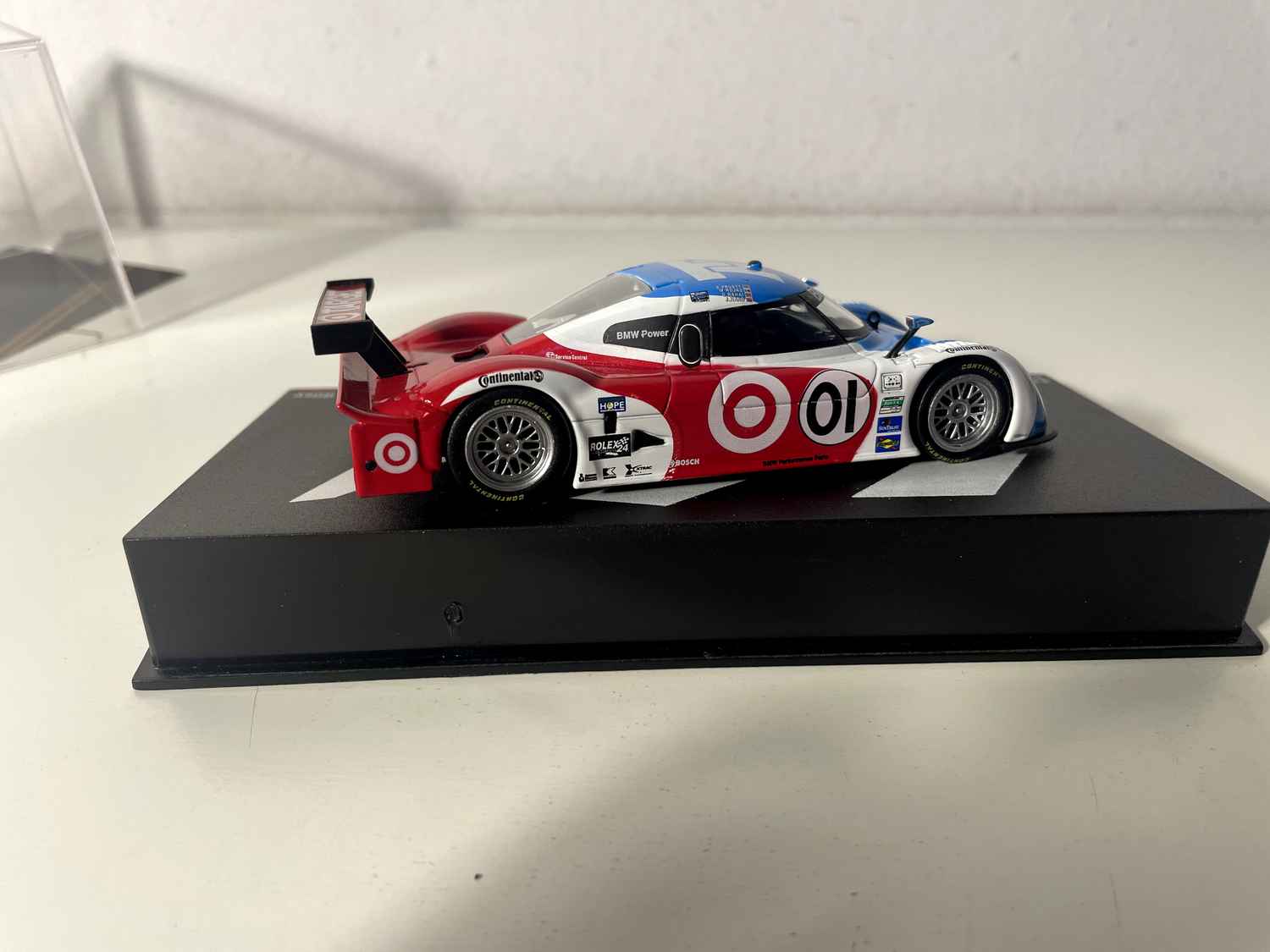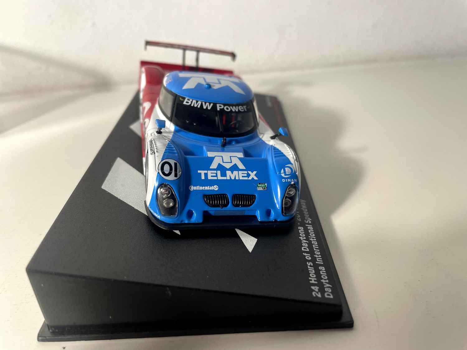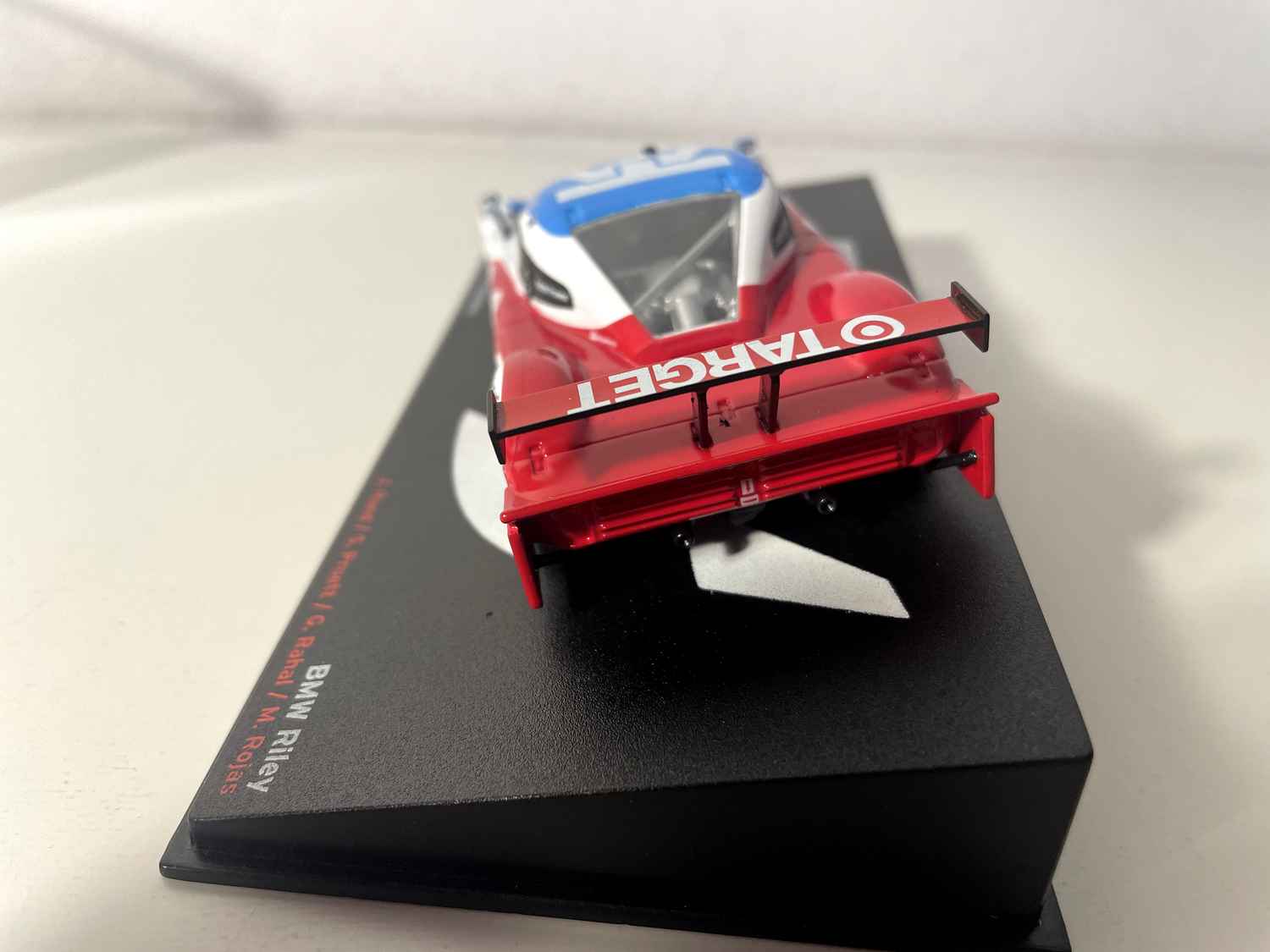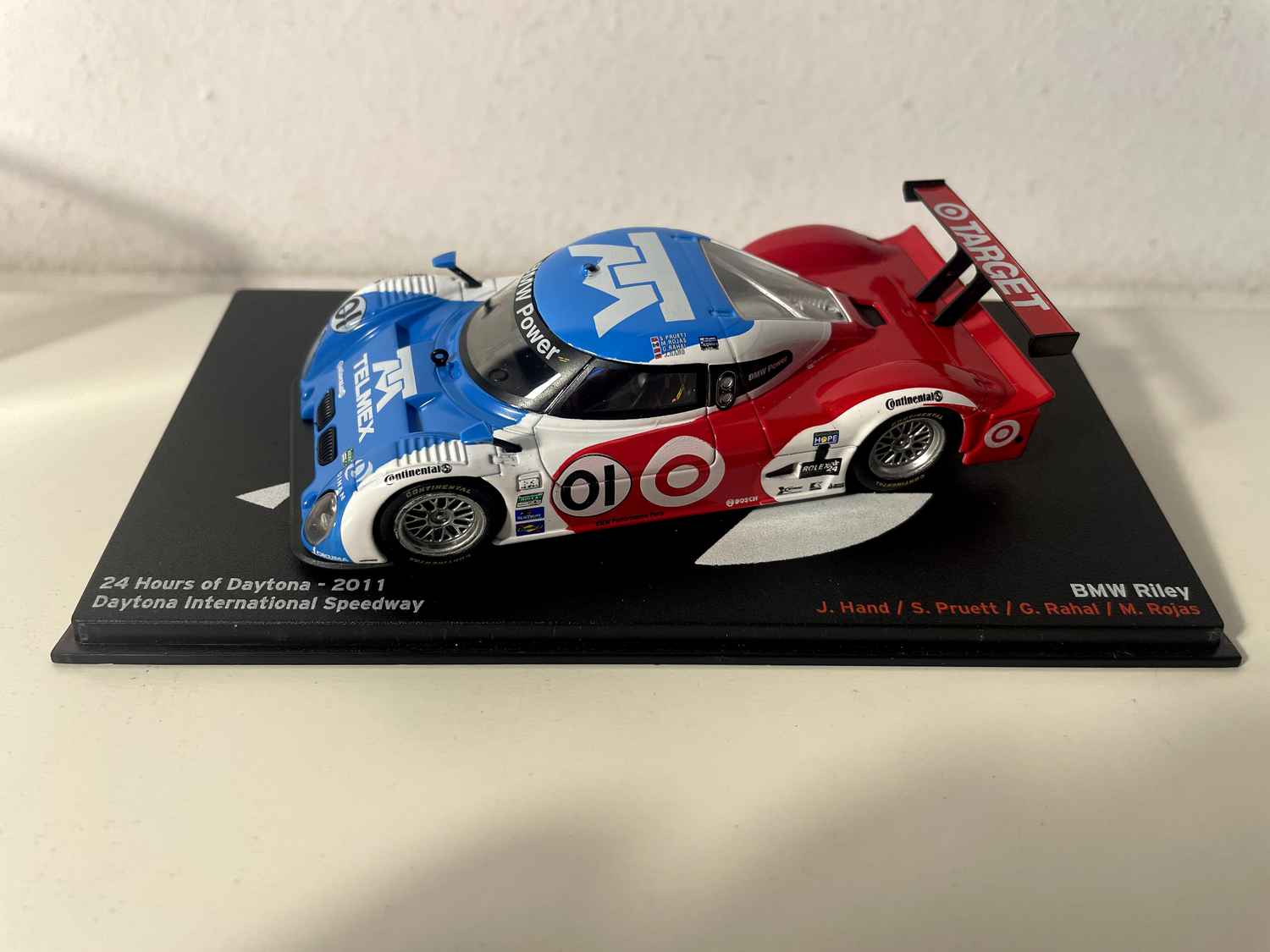 Dësen schéinen BMW Riley blo, wäiss a rout Nummer 01 reproduzéiert genee déi legendär Auto, déi d'24 Stonne vu Daytona 2011 markéiert huet. Dës Miniatur fängt perfekt d'Essenz vun dëser aussergewéinlecher Rennmaschinn, déi un enger vun den héchstbewäerte Rennwiesen um berühmte Daytona International Speedway deelgeholl huet.