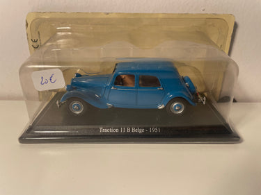 Den Citroën Traction 11 B vun 1951 ass duerch seng blo Faarf an seng belgesch Herkunfteneeonderschiddlech, wat d’international Expansion vun dësem revolutionäre Modell widdergëtt. Dësen fidel reproduzéierten Miniatur fänkt d'Essenz vun enger Zäit un, wou Citroën d’Automobilstandardännerung mat technesche Innovatiounen déi bleibend Geschicht vun der Mark mam zweefach Chevron geformt huet.
