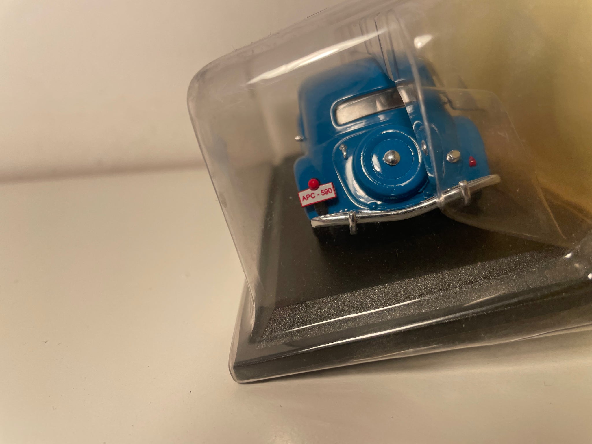Ech richteg Sammlerstéck, dës Reproduktioun an der Skala 1/43 ass fir Auto-Enthusiasten déi wëllen e Modell vun engem vun den einflusfullsten Autos vum 20. Joerhonnert besëtzen. D'blo Faarf, déi charakteristesch ass fir d’Modeller die an Belgien verkaaft gi sinn, bréngt eng besonnesch historesch Dimensioun dës aussergewéinlech Stéck.