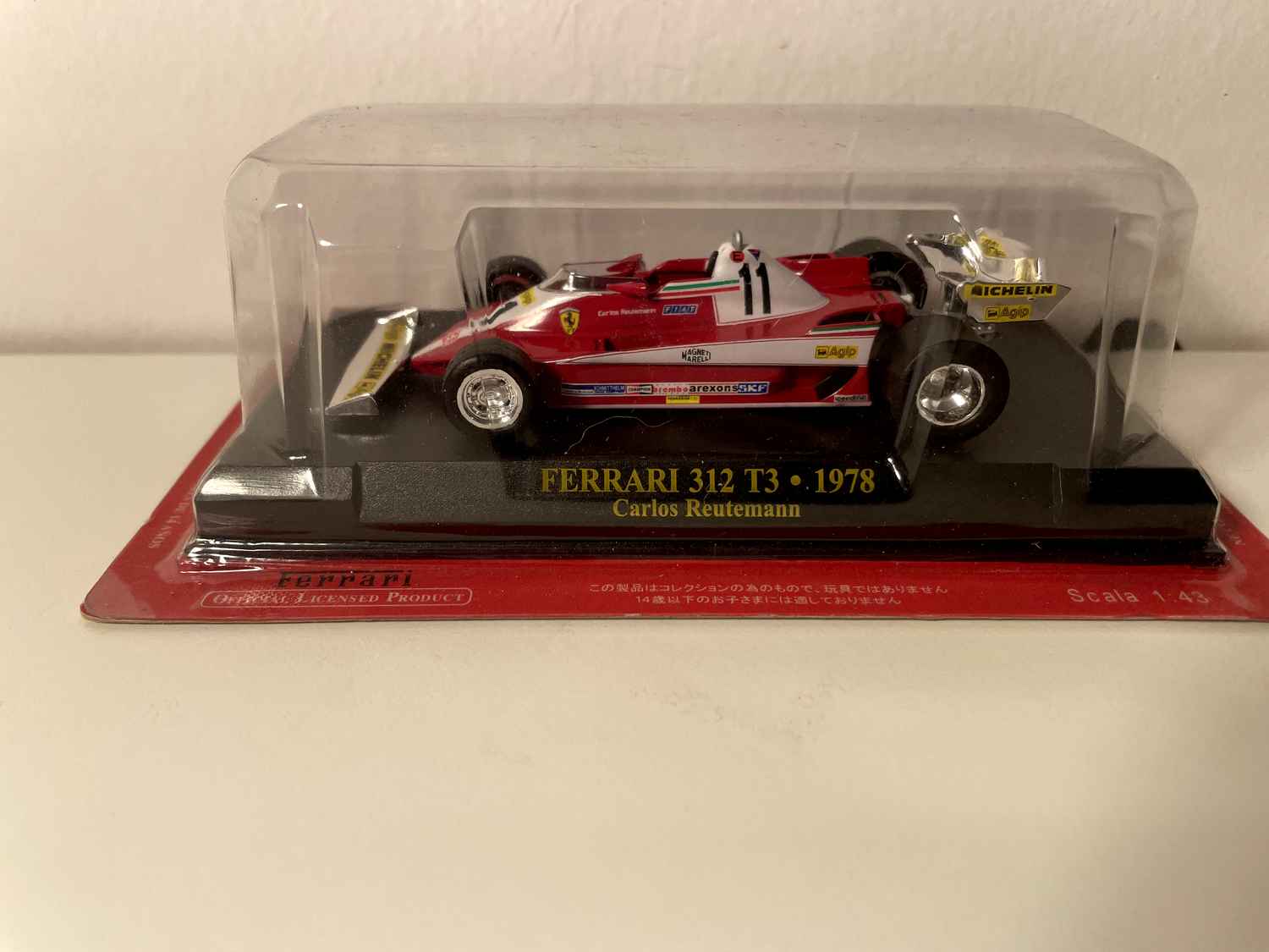 Modellauto Ferrari 312 T3 rout Nummer 11 vun 1978 - Formel 1 - Carlos Reutemann