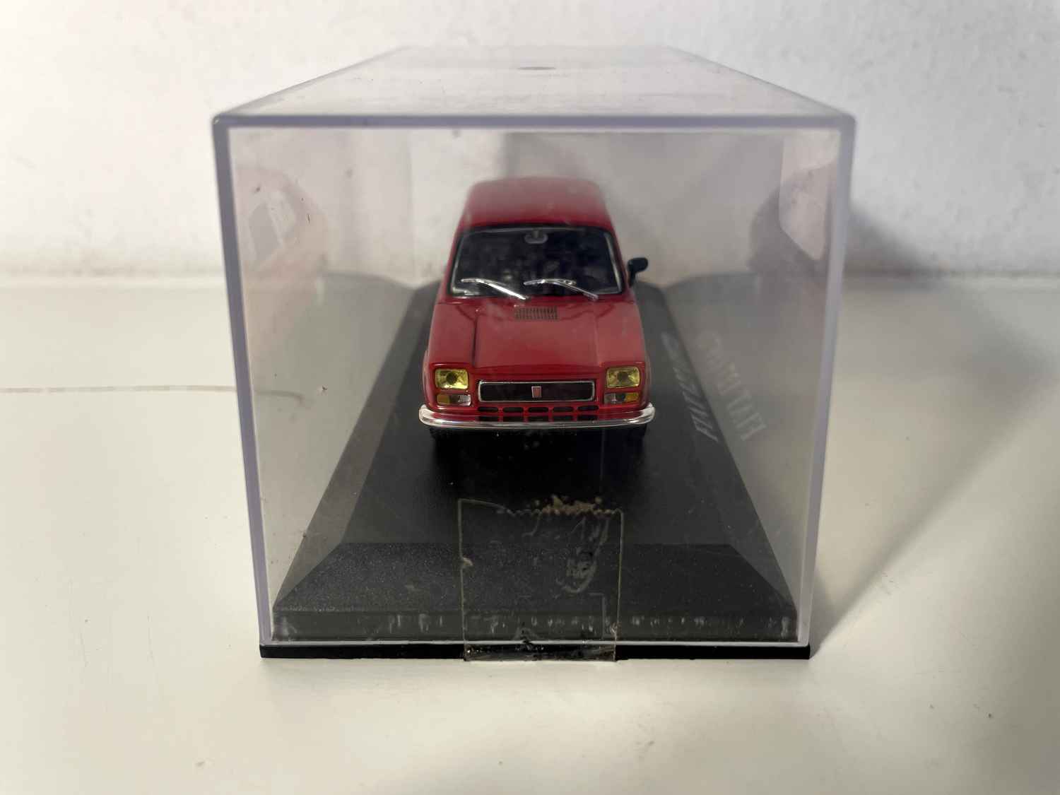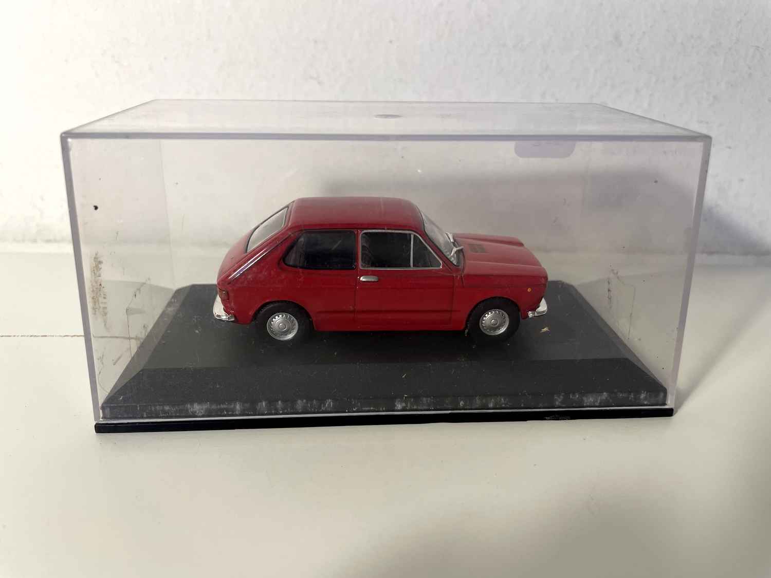 Dëse rout Fiat 127 besetzt eng strategesch Plaz an der Welt vun den europäesch Miniaturautomobiller. Et passt perfekt an Themenkollektionen, déi der Automobiler vun den 70er Joren gewidmet an de bedeitende techneschen Innovatiounen aus der Automobill Industrie.