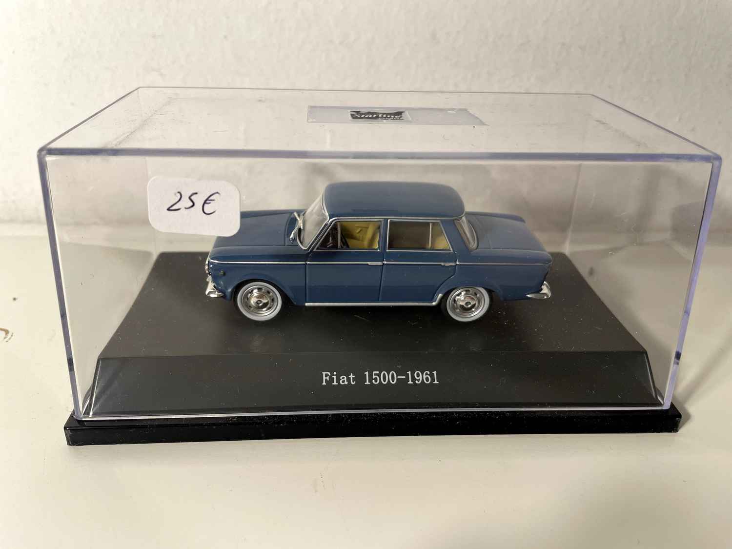 Entdeckt dëse schéinen Fiat 1500 Miniatur aus 1961, déif reproduzéiert a sengem schéine blauen Optrëtt duerch Starline Models. Dës exceptional Replik fänkt all déi Eleganz vun der italienescher Limousine, déi d'Fong vun de 60er Joeren definéiert huet.