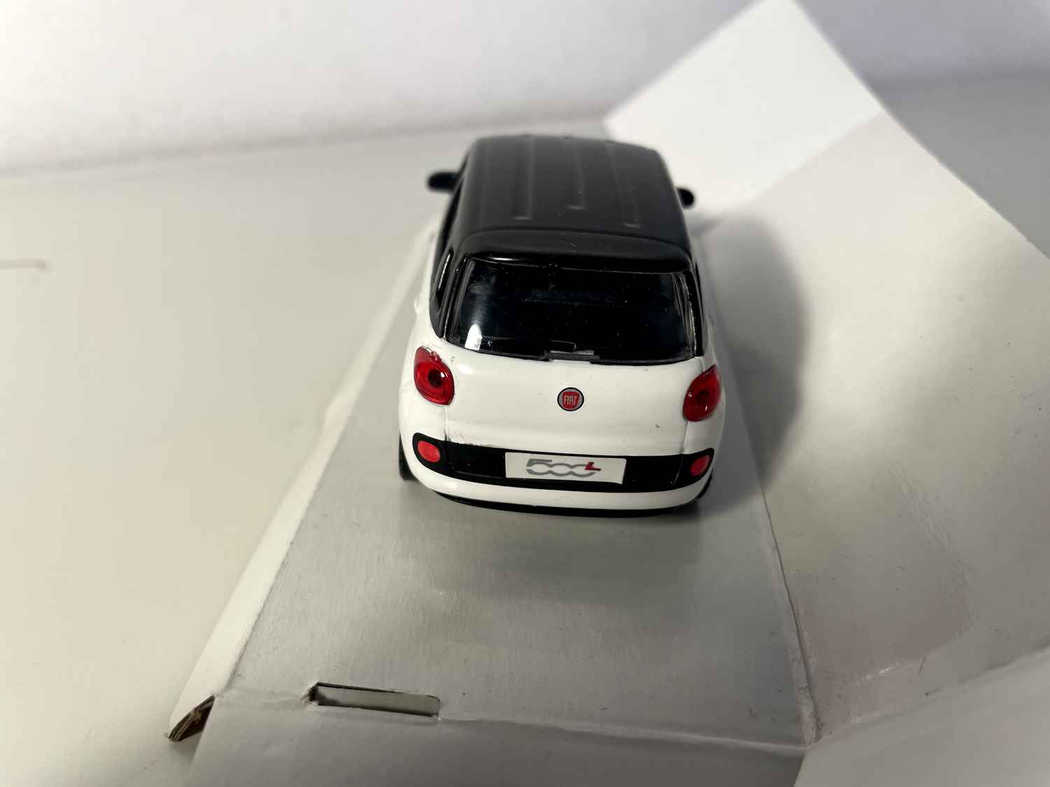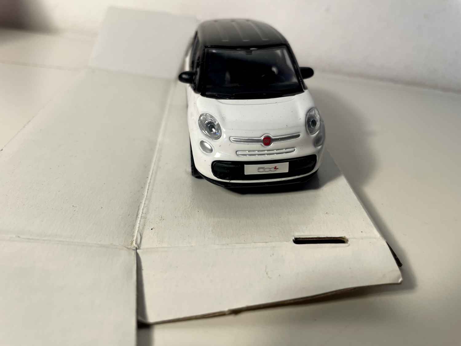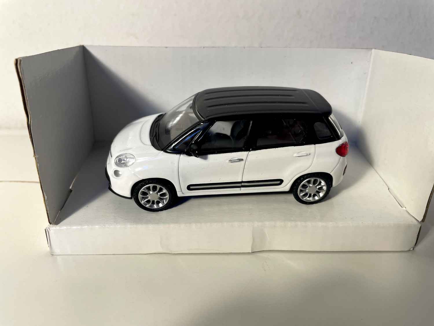 Modellauto Fiat 500L wäiss mat schwaarzem Dack